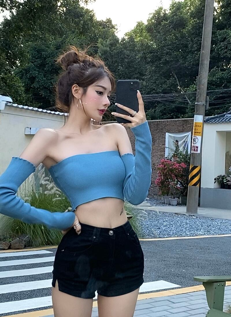 サマースタイルニットトップス 薄手ショート 夏物 Xiaofeijia90146242905
