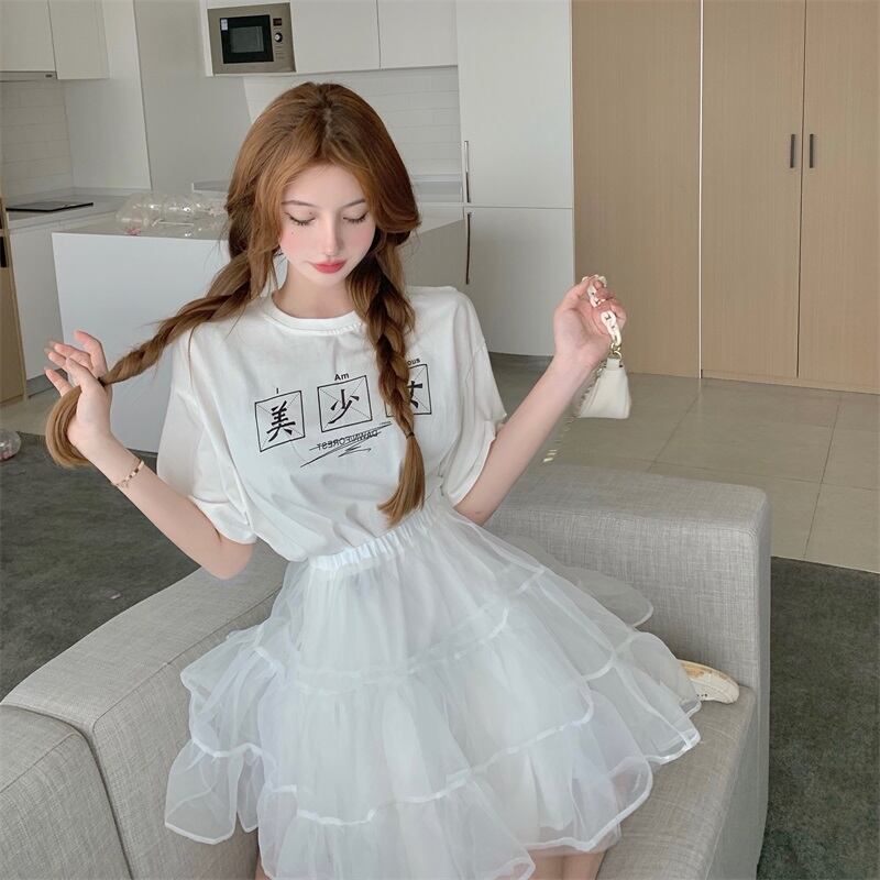 ショートスカート サマーTシャツ 薄手ハイウェストセット 夏物 パニエ ペチコート Xiaofeijia24886019593