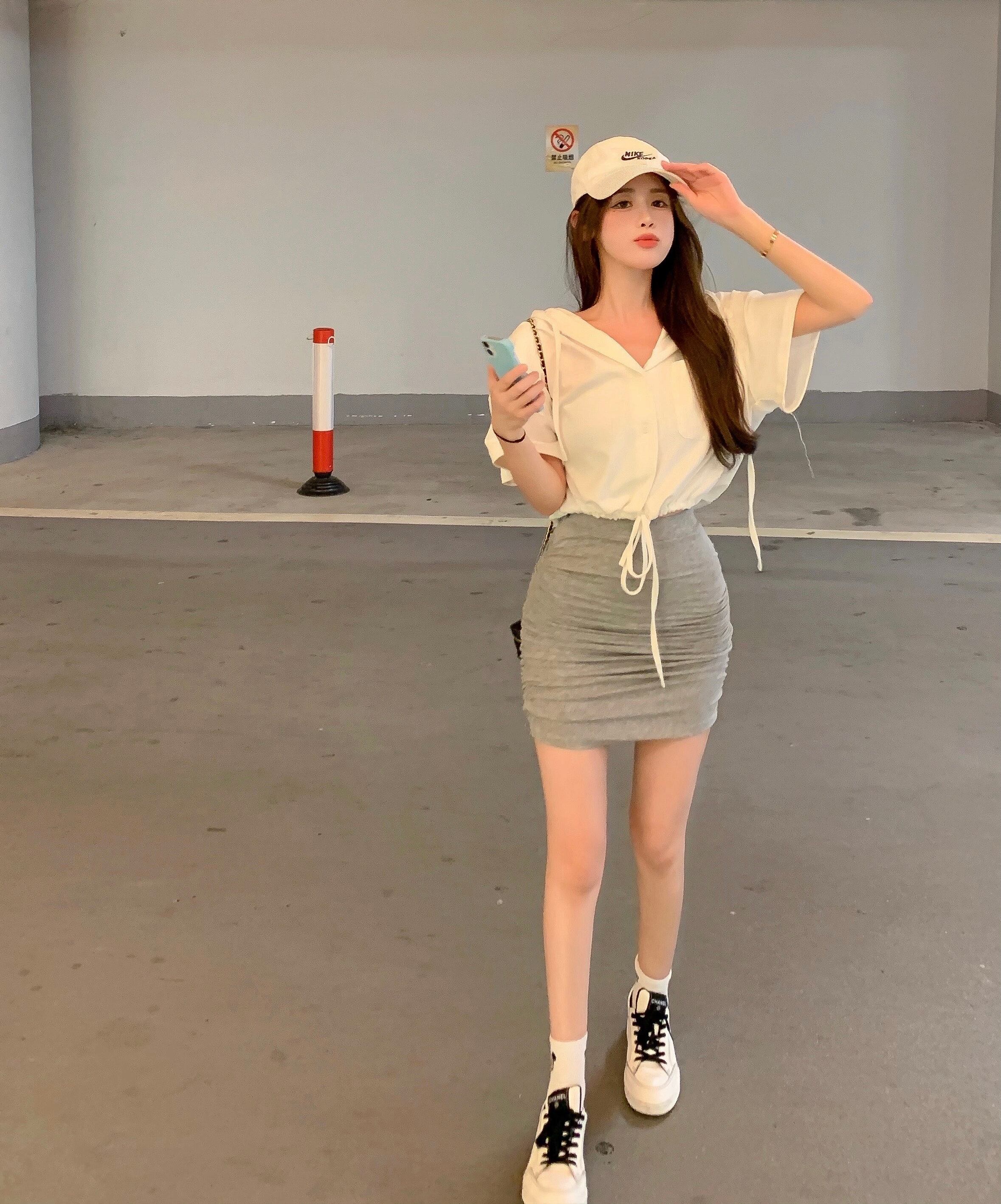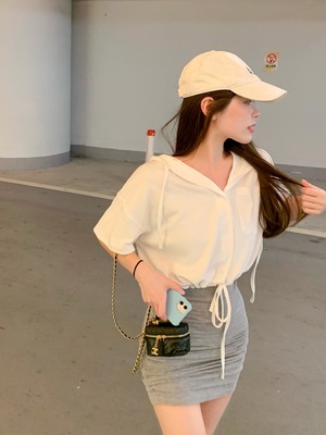 ルーズフードトップス プリーツスカート Xiaofeijia91152765589