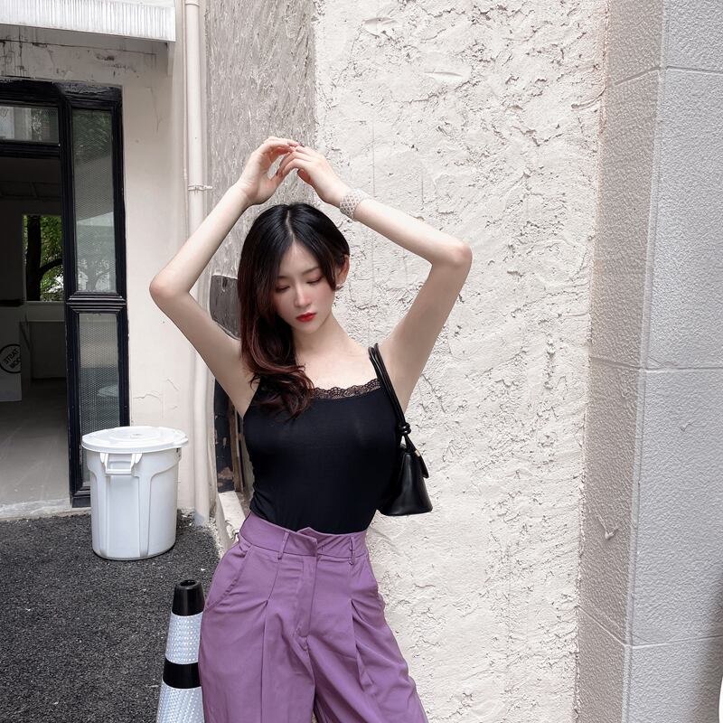 レースサイドサマーショートスリムノースリーブトップス シャツ 夏物 Xiaofeijia53415061332