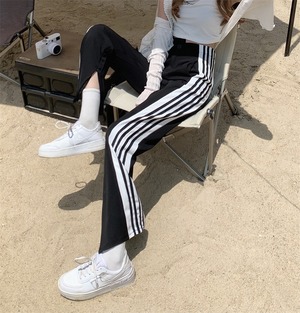 ハイウェスト薄手ストライプレッドカジュアル Xiaofeijia65148776027