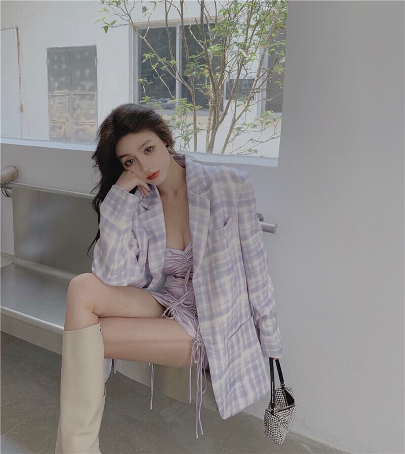 格子柄ジャケット サマースタイルルーズカジュアル ロング 夏物 Xiaofeijia5042987855