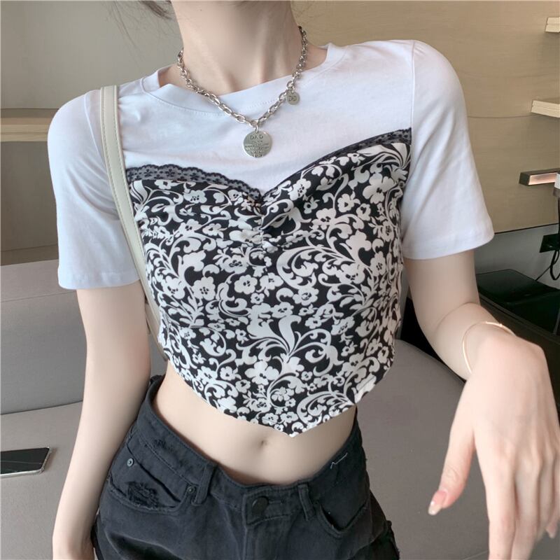 スタイルスリムフローラルショートトップス 花柄 Xiaofeijia47990186635