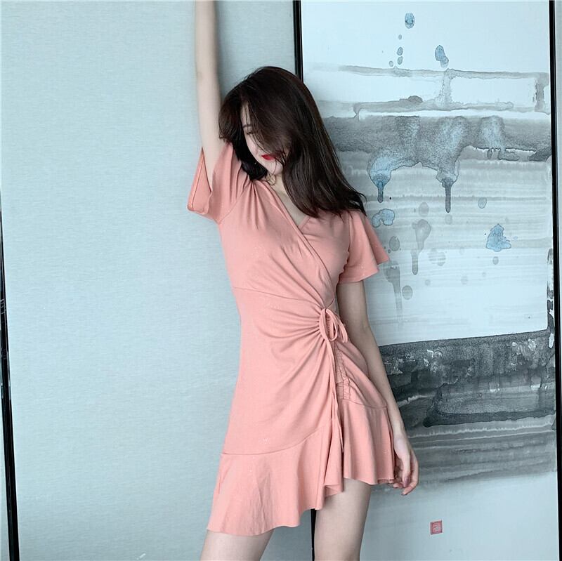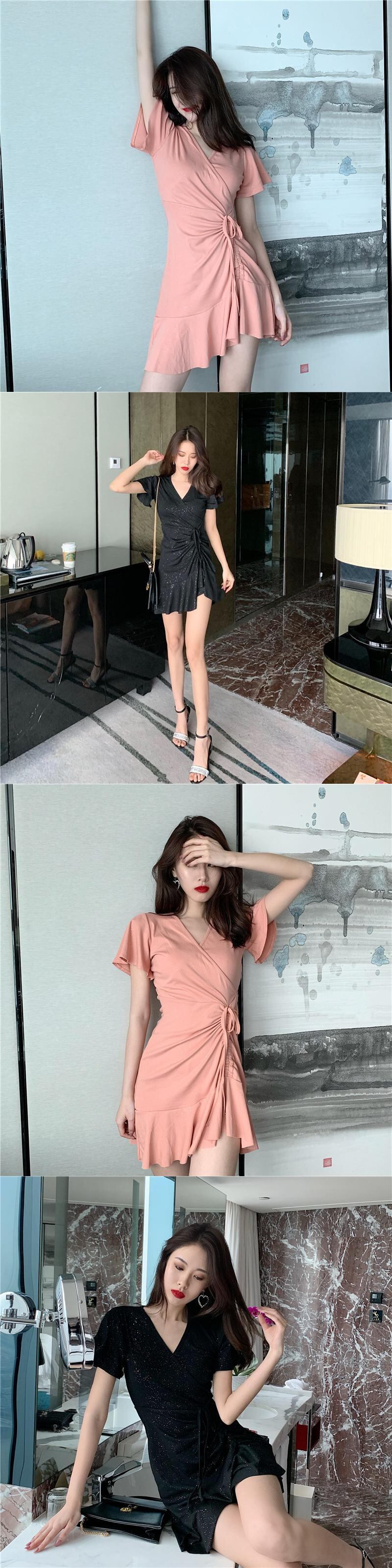 クロスVネックウェストギャザードレス Xiaofeijia72965252633