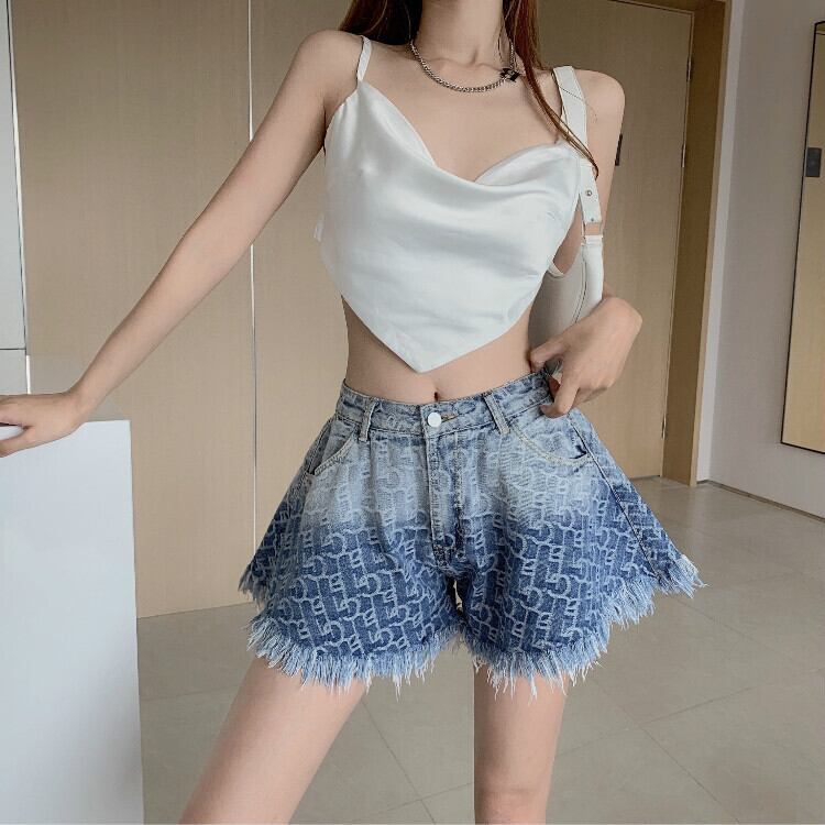 ジャカードジーンズ ショーツ サマー薄手ハイウェストウェストルーズAラインスカート パンツ 夏物 ブルマー Xiaofeijia63967699198