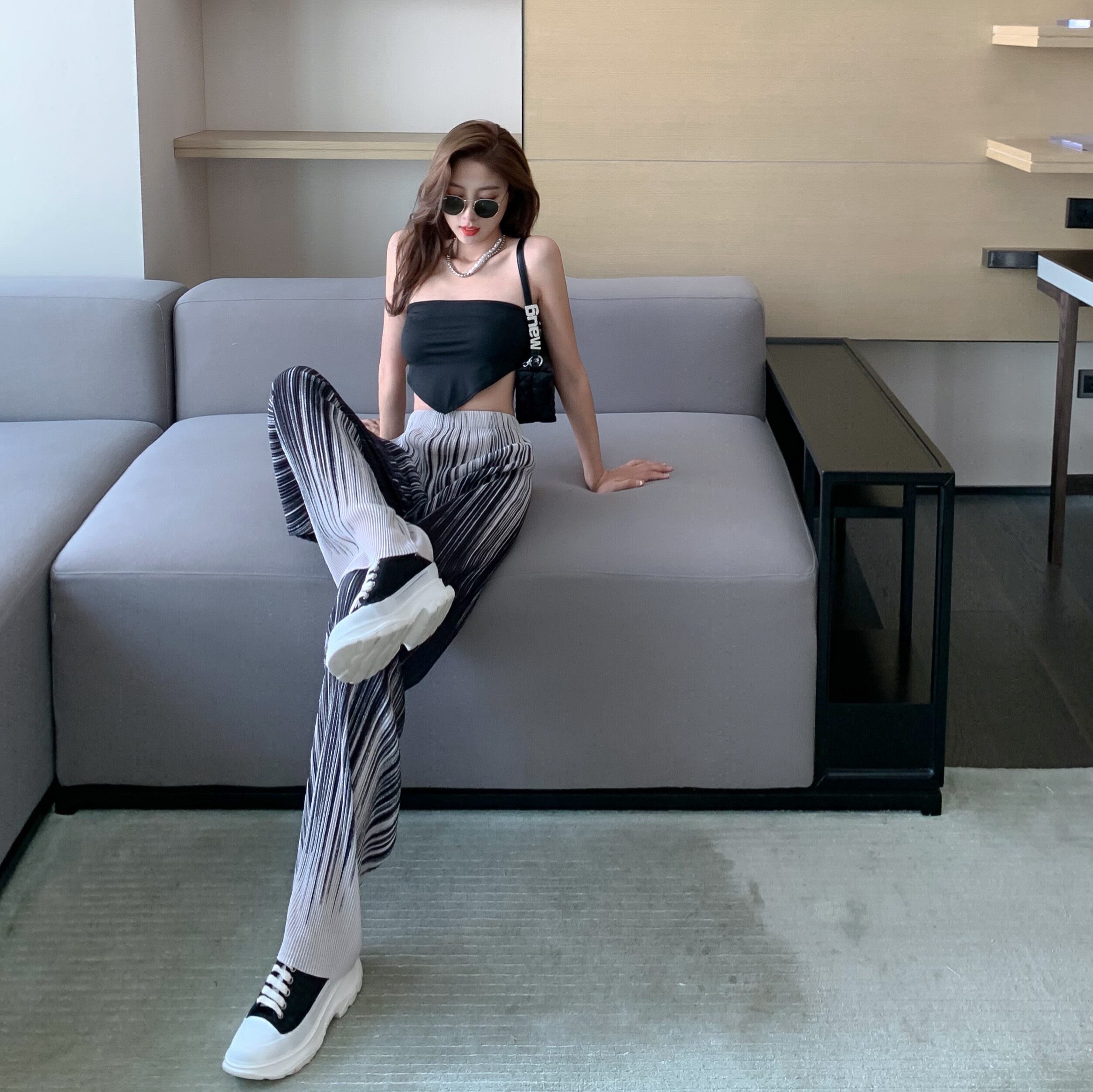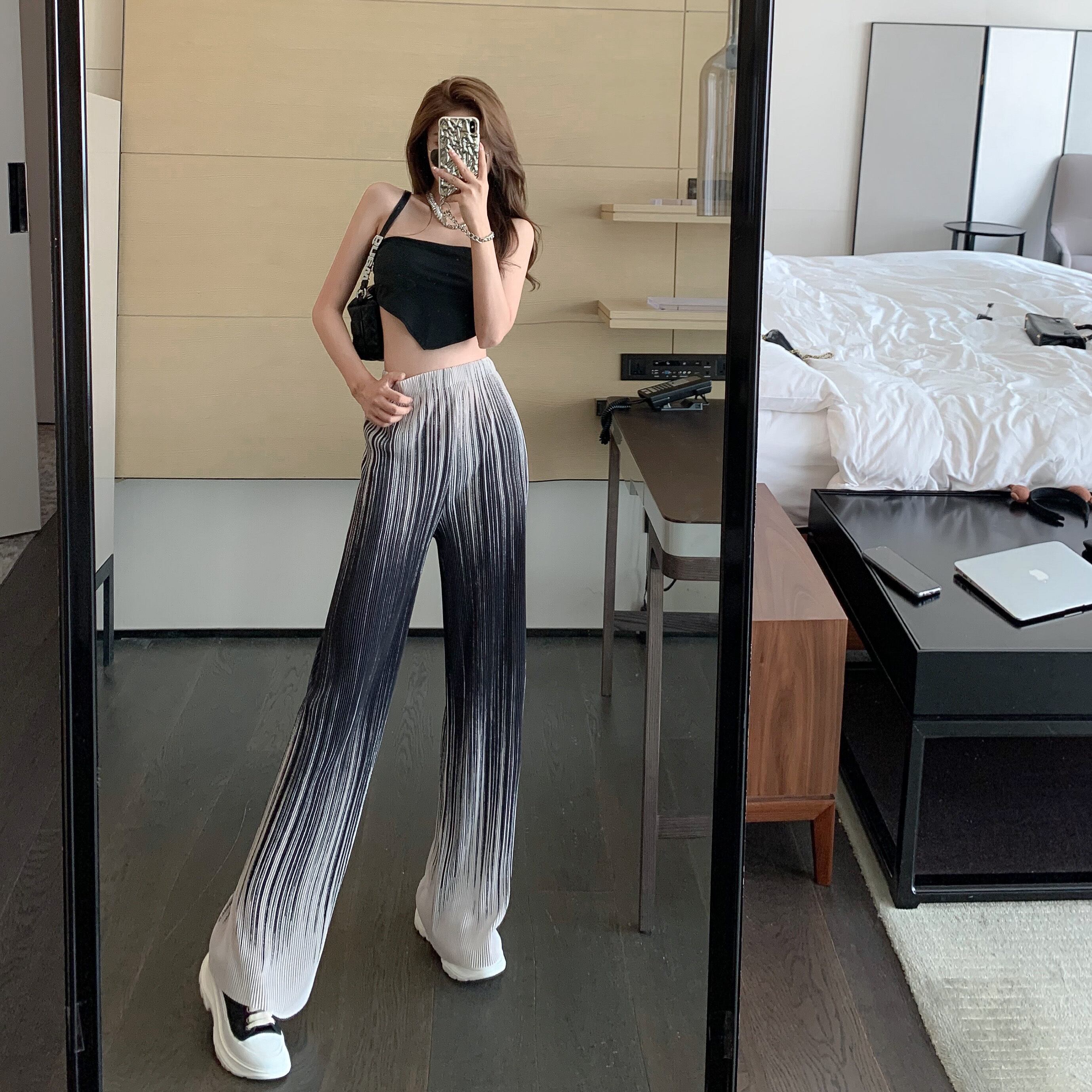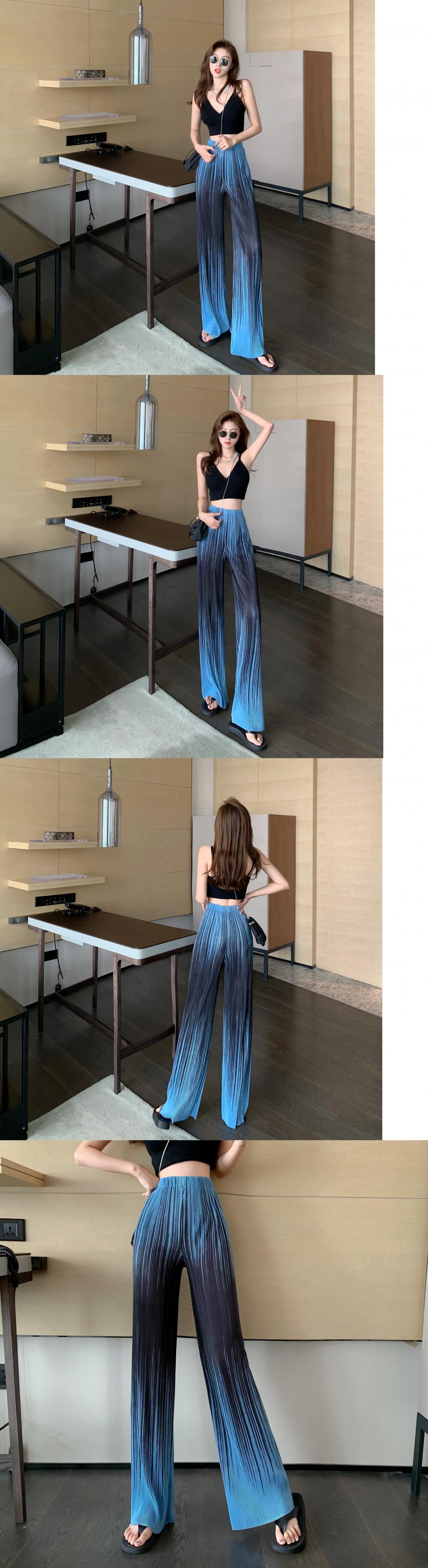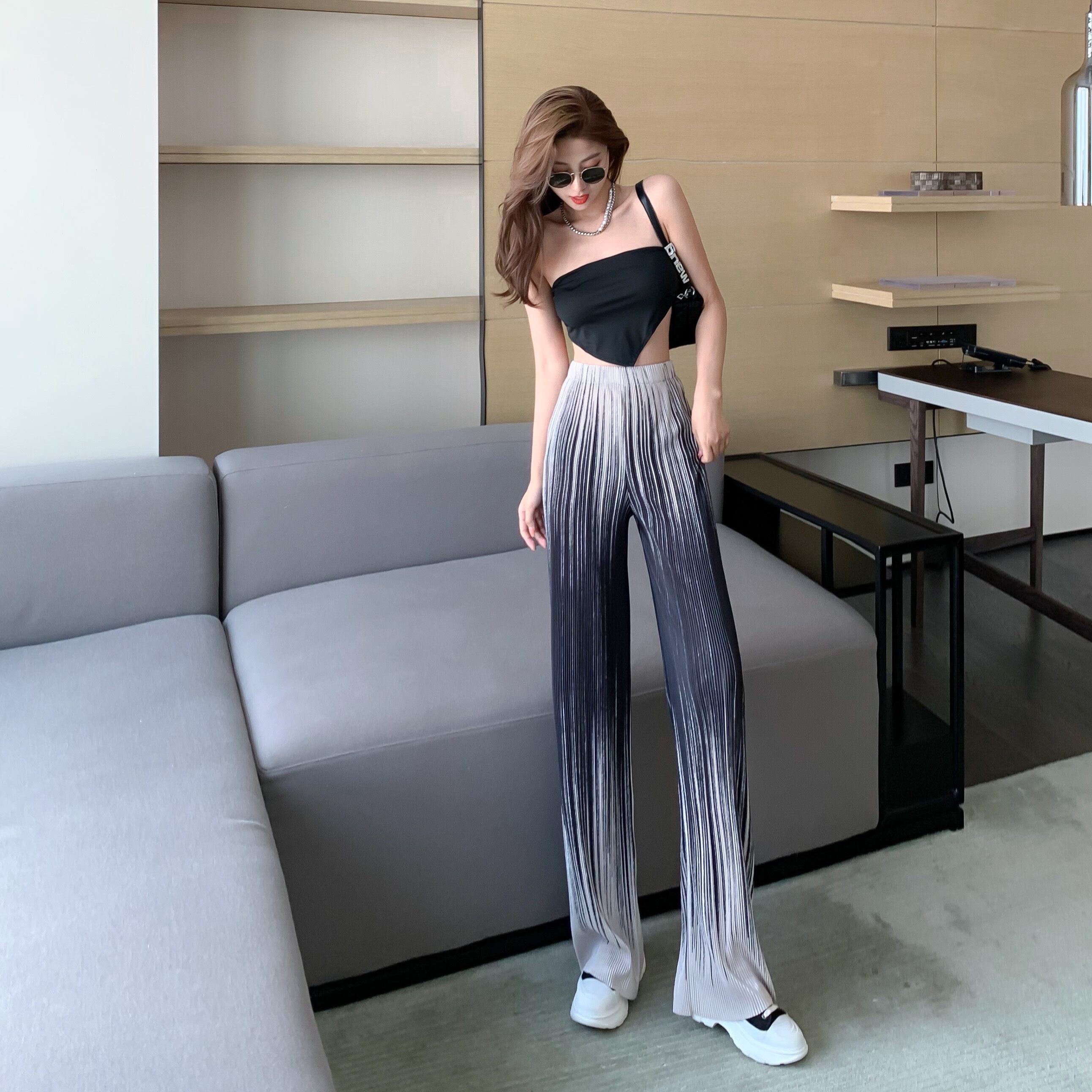 カラーパンツ サマーハイウェストロングルーズプリーツカジュアル 夏物 Xiaofeijia12973607787