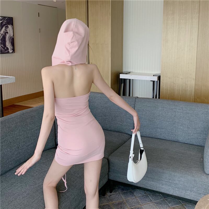 フードバックギャザープリーツドレス Xiaofeijia85299785406