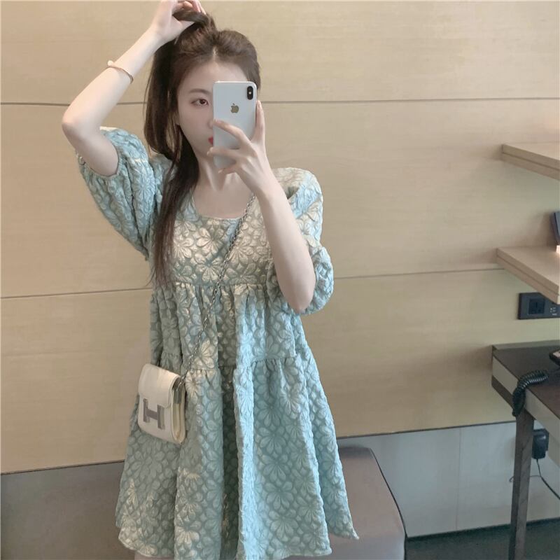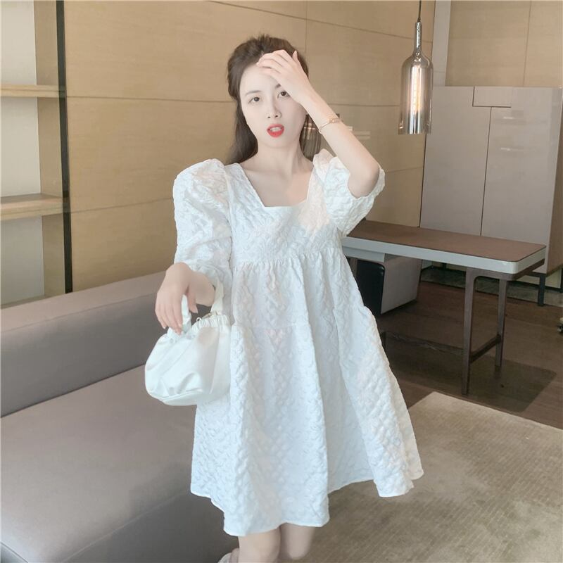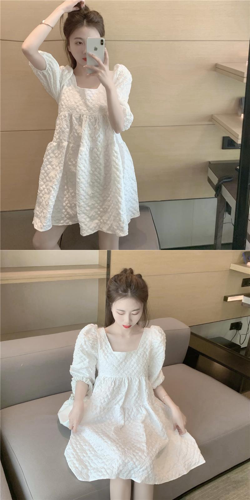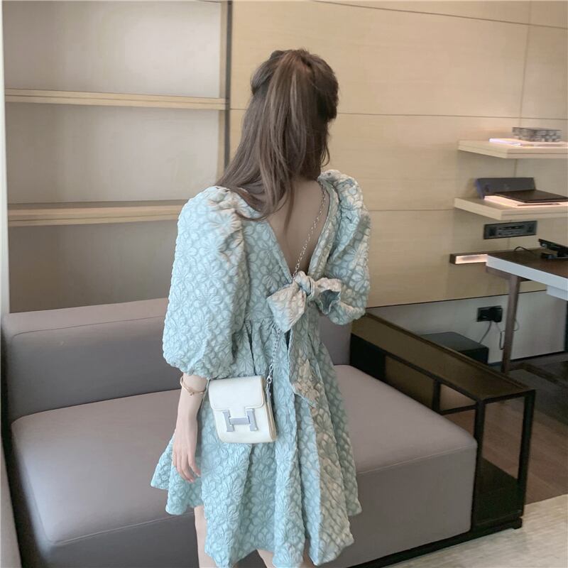スリーブドレス レディースサマールーズリボンスカート 大人ガーリー スウィート キュート カジュアル ふわふわ 夏物 スクウェア Xiaofeijia81061516447