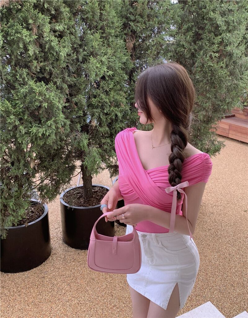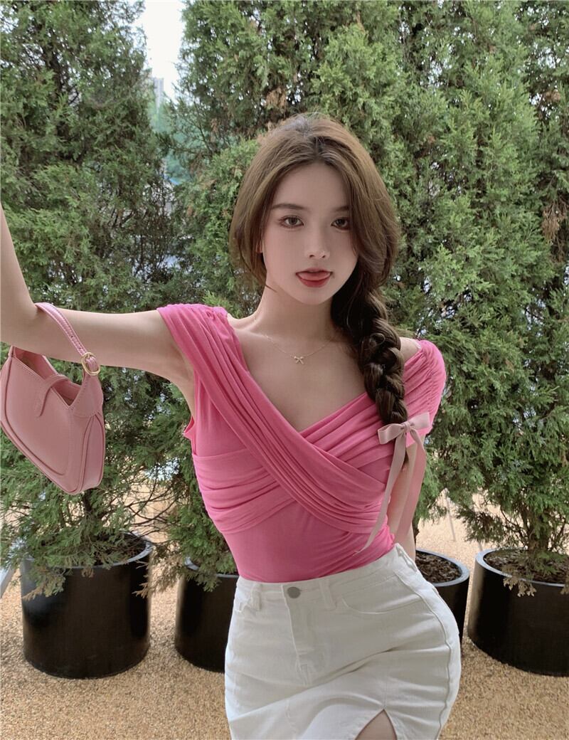サマーメッシュ半袖スリーブニットトップス ショート レッド ハーフスリーブ 刺繍 大人ガーリー スウィート キュート カジュアル 夏物 Xiaofeijia80845380408