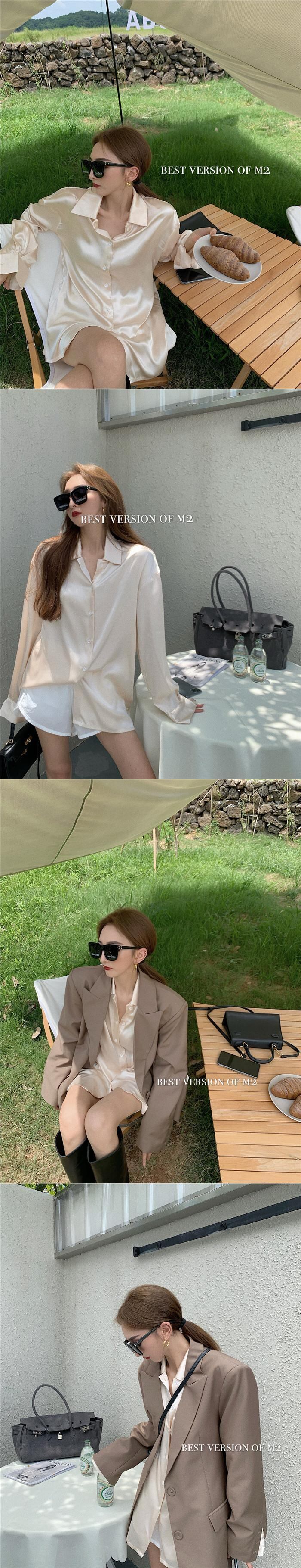 スタイルサテンルーズシャツ スプリングスタンダードブラウス レトロ 春物 Xiaofeijia75393834852