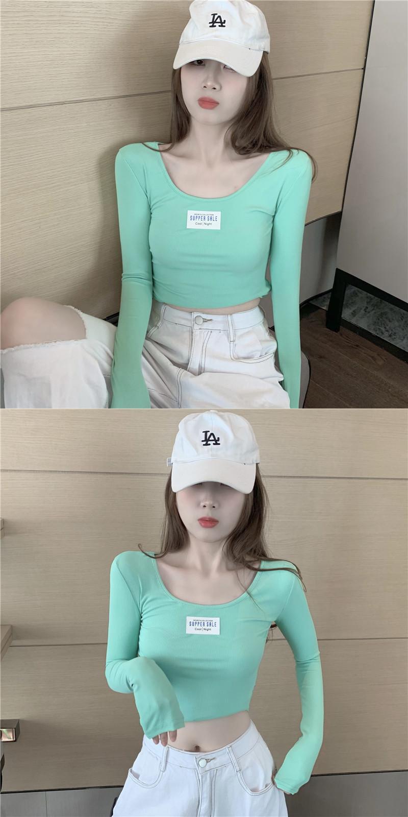 スプリングコート ソリッド カラーラウンドネックシャツ Tシャツ ロング 春物 Oネック ソリッドカラー Xiaofeijia70305773450