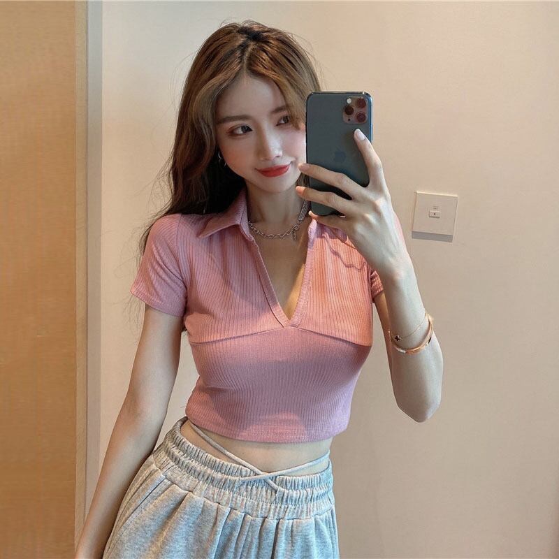 スタイルVネックスリムTシャツ トップス サマー 夏物 Xiaofeijia87179279489