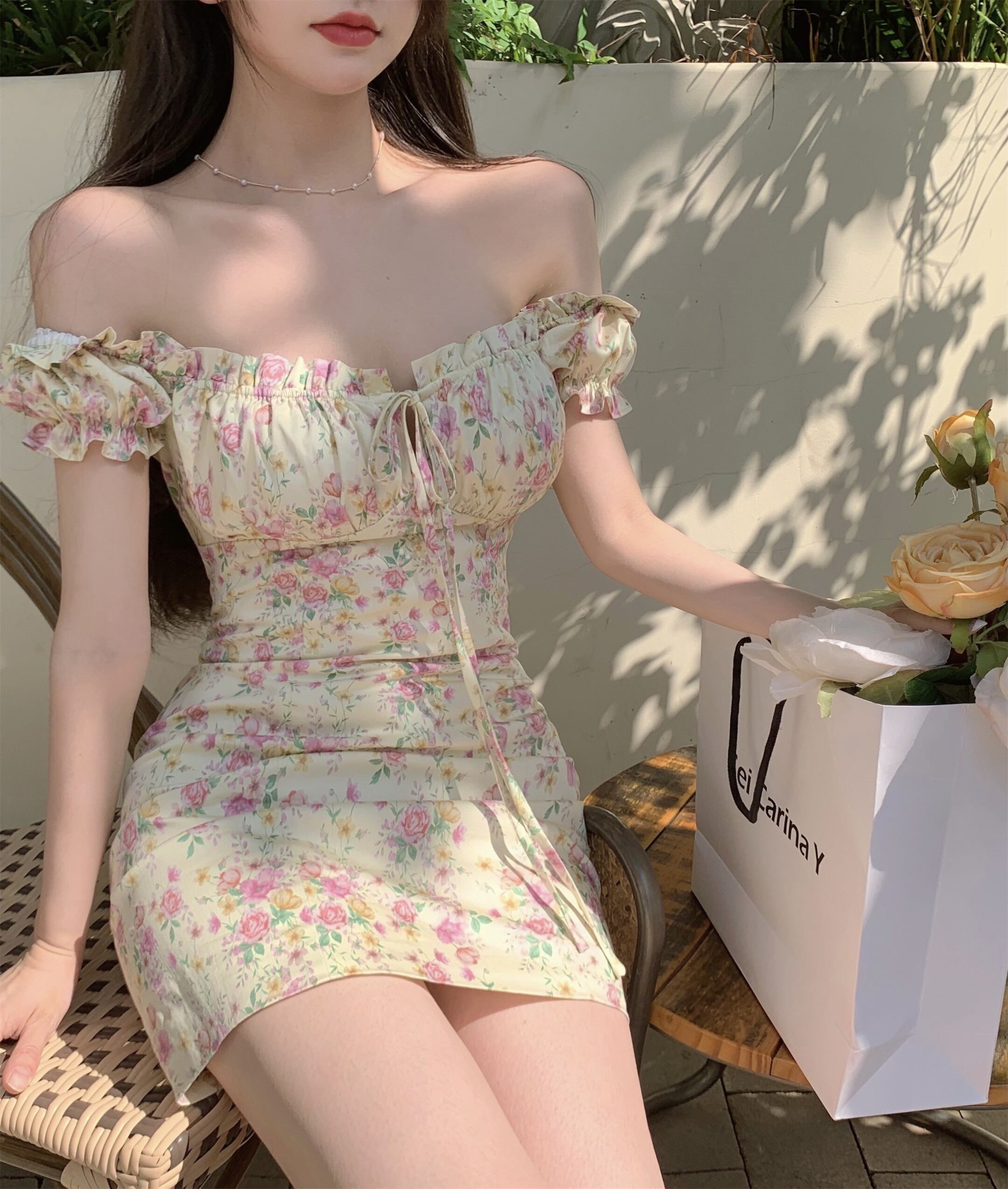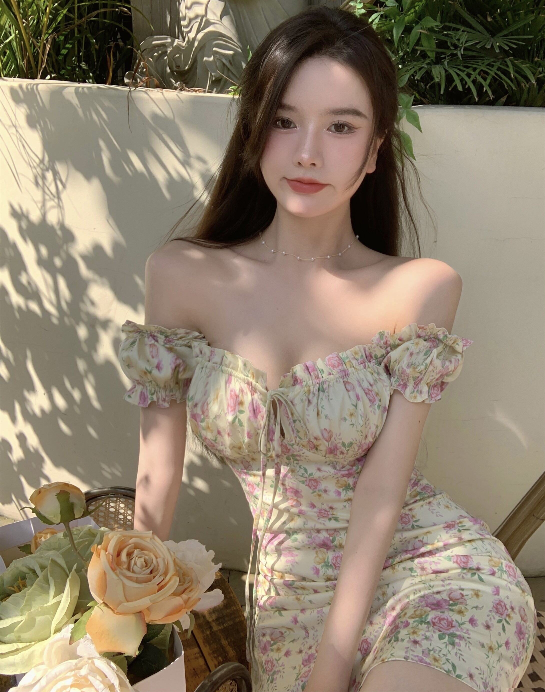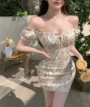 ギャザーフローラルドレス 花柄 Xiaofeijia12104010945