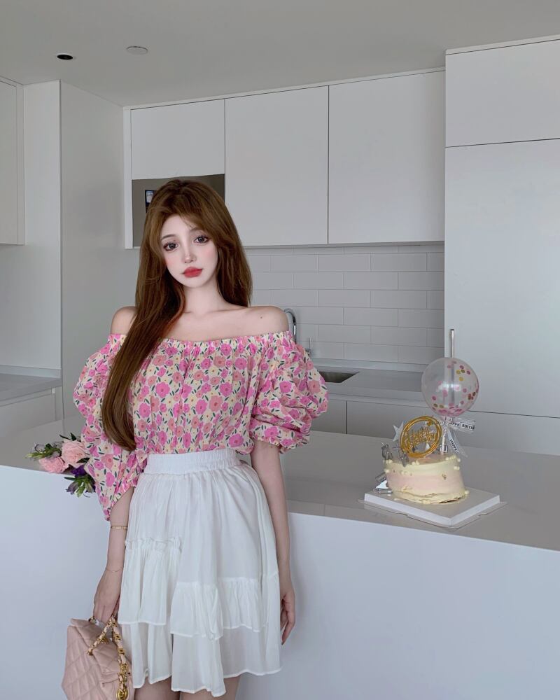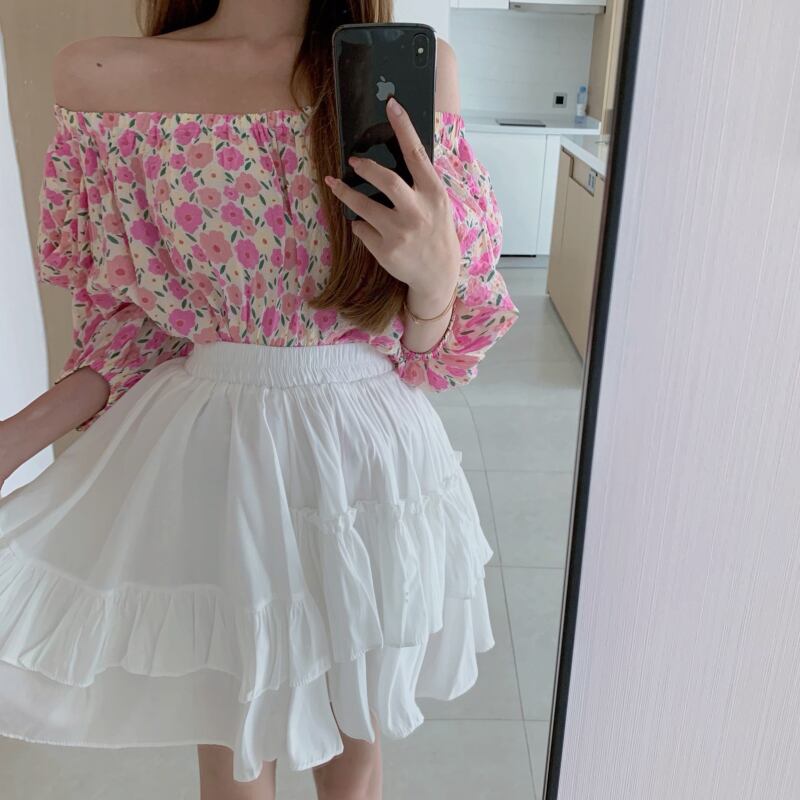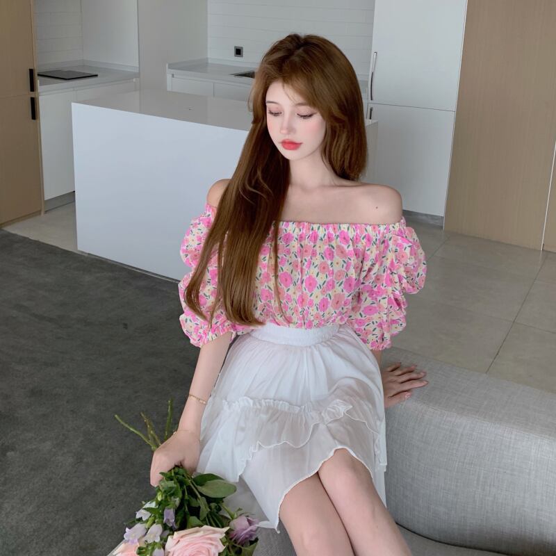 Flowerデザイン ストラップレススリーブシャツ 薄手スカート フラワーデザイン Xiaofeijia66954144354