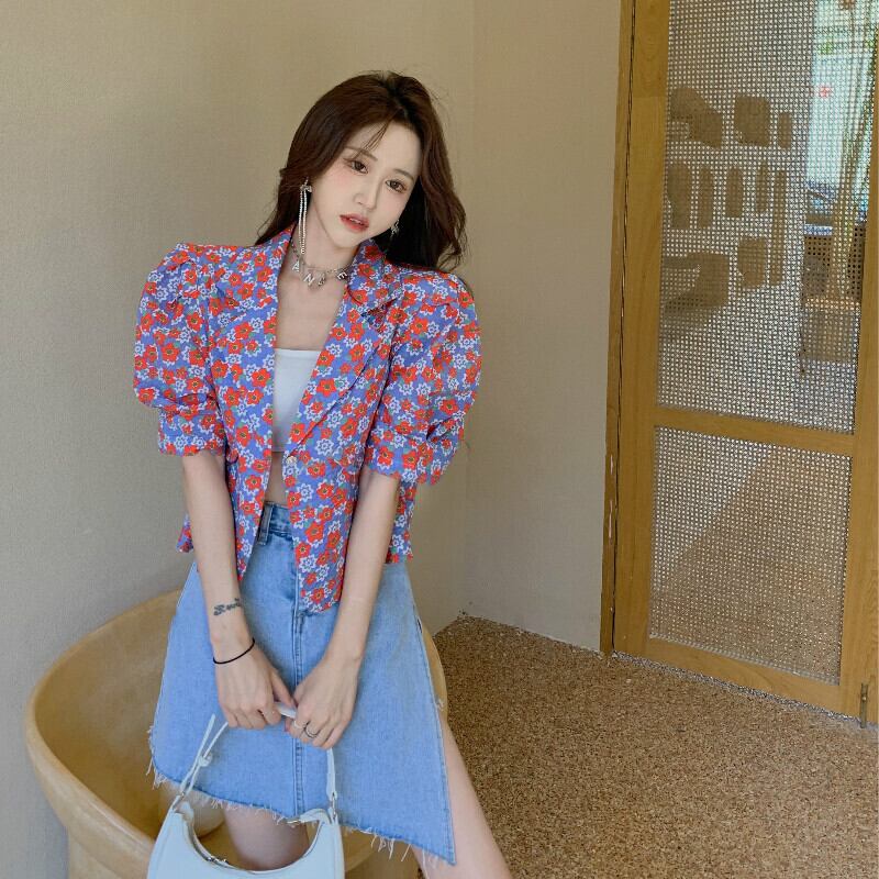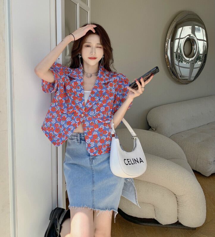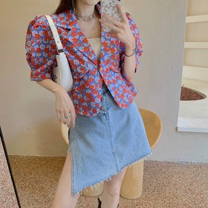 スタンダードスタイルプリント柄トップス Flowerデザイン シャツ レトロ フラワーデザイン Xiaofeijia97045499794