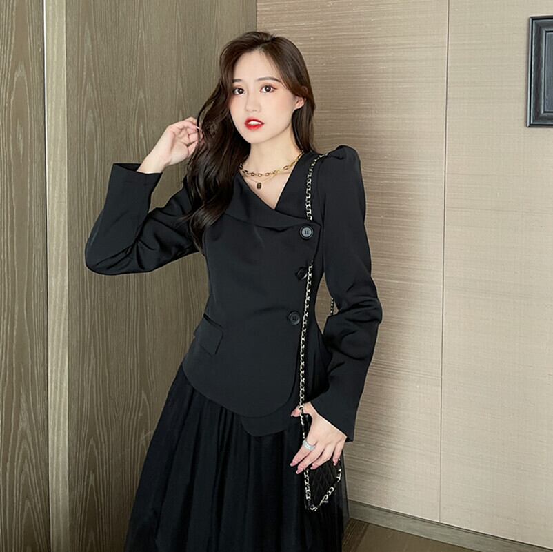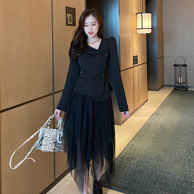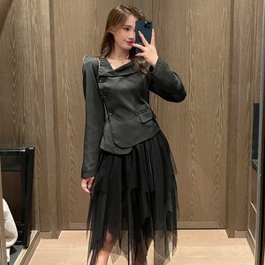 スプリングブラックジャケット メッシュスカート 春物 Xiaofeijia53435404886