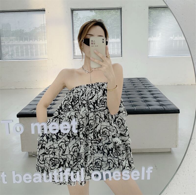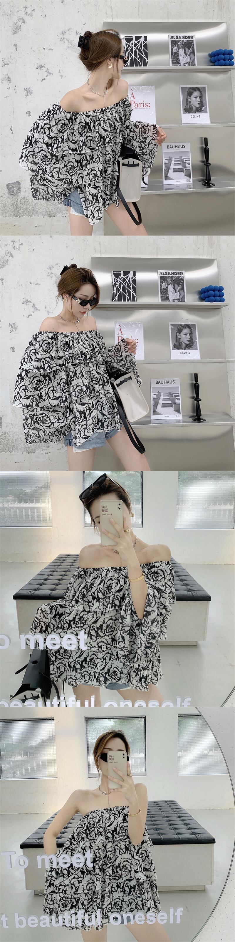 シフォンプリント柄トップス 大人ガーリー スウィート キュート カジュアル Xiaofeijia59447832297