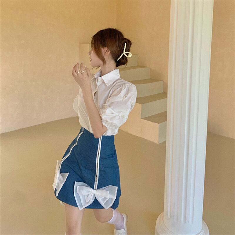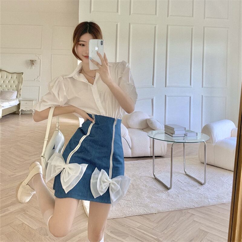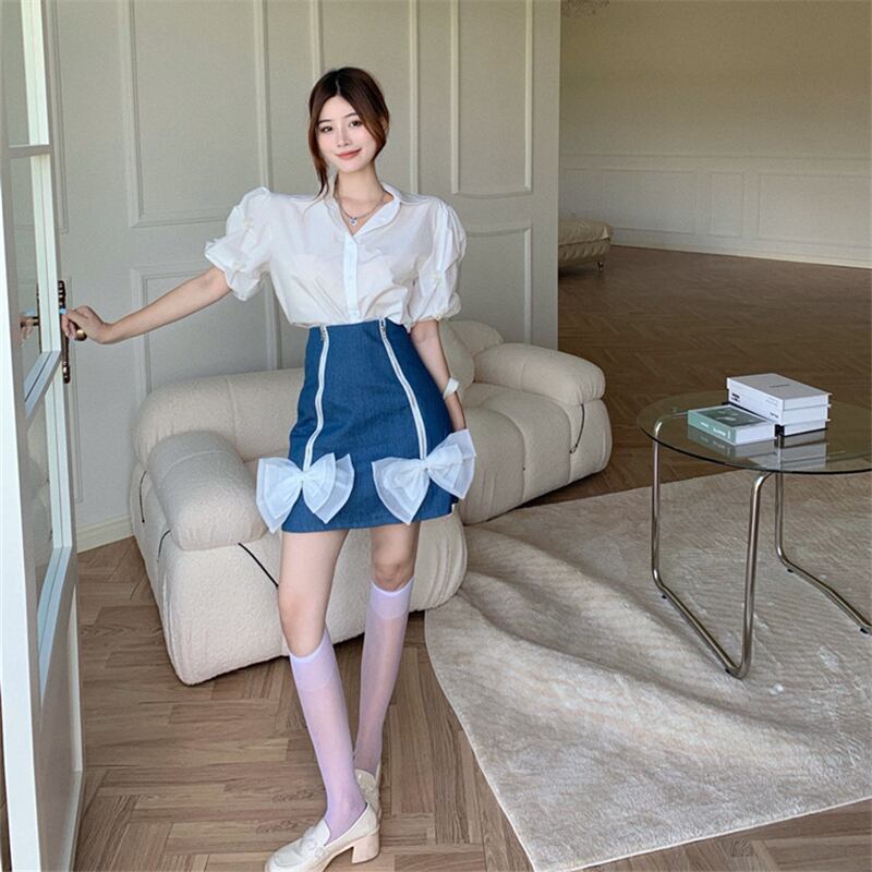 カラーホワイトシャツ リボンスカート Xiaofeijia18394092518