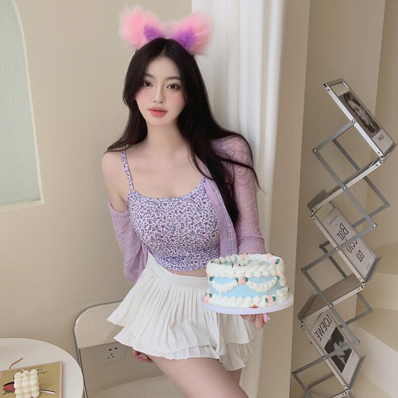 フローラルVネックニットカーディガンジャケット 薄手スカート 花柄 Xiaofeijia79781906286