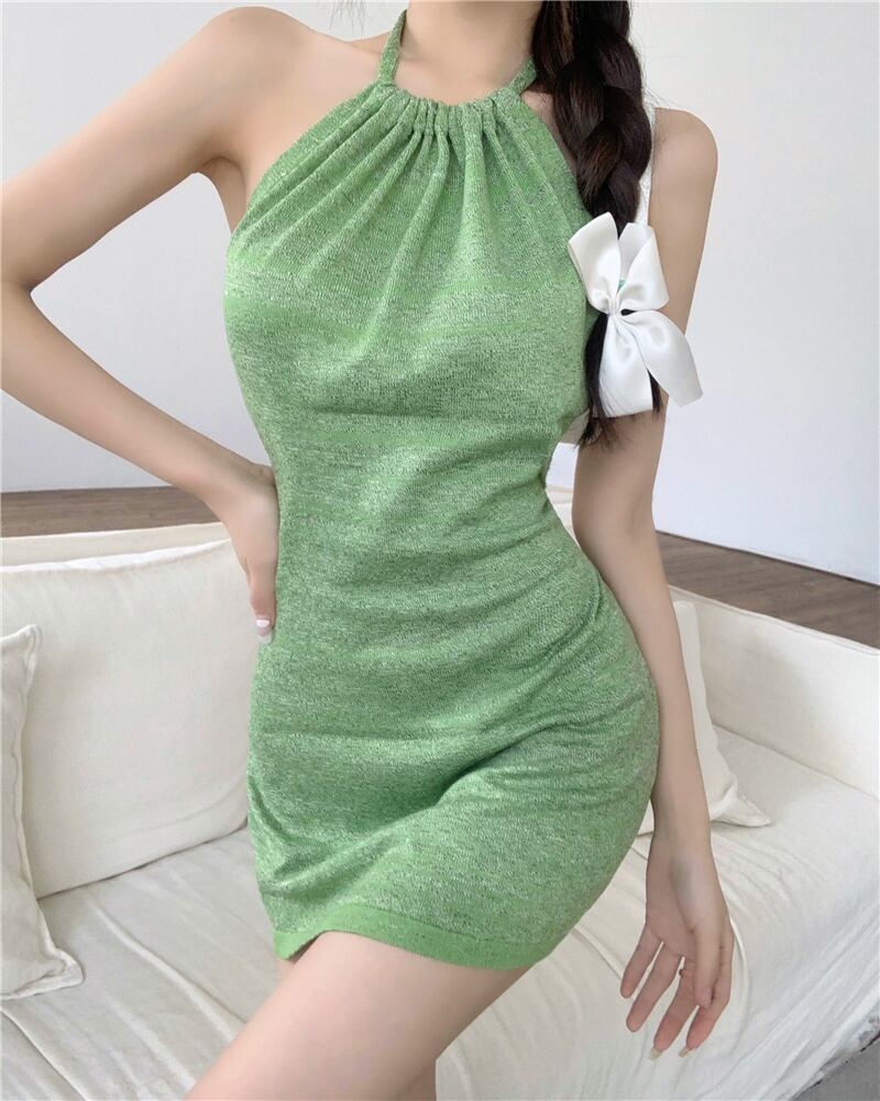 スタイルニットフローラルカラーバックレスドレス ショート アジャスタブル 花柄 スカート Xiaofeijia61647403767
