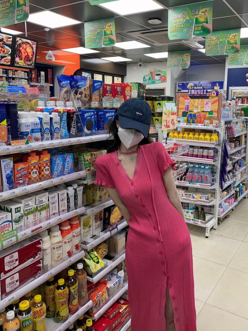 サマースタイルホワイトスリット薄手ロングスカート ニットドレス 夏物 Xiaofeijia96922533595