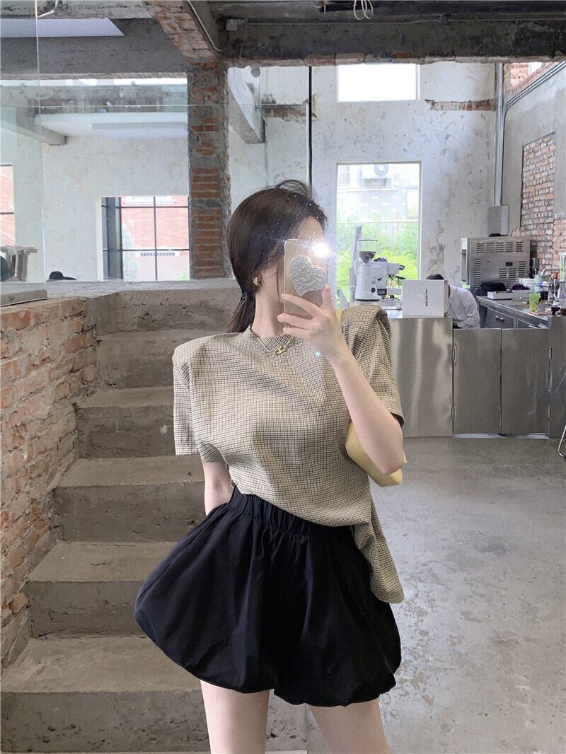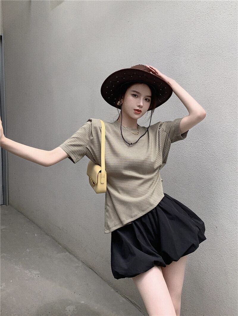 色:黒芽キュロット,赤と緑のチェック柄トップ
