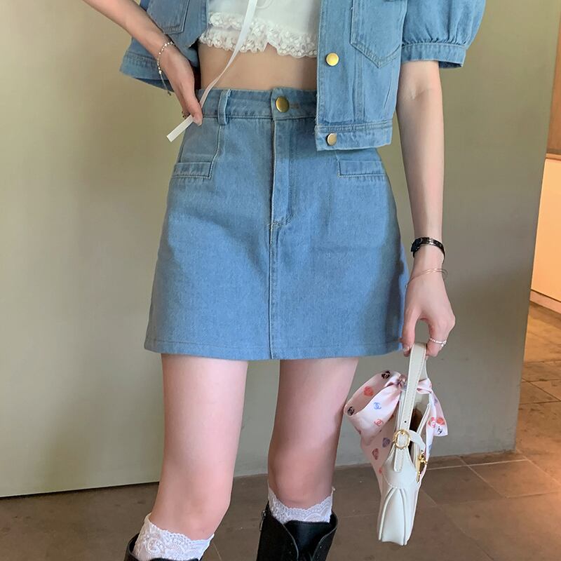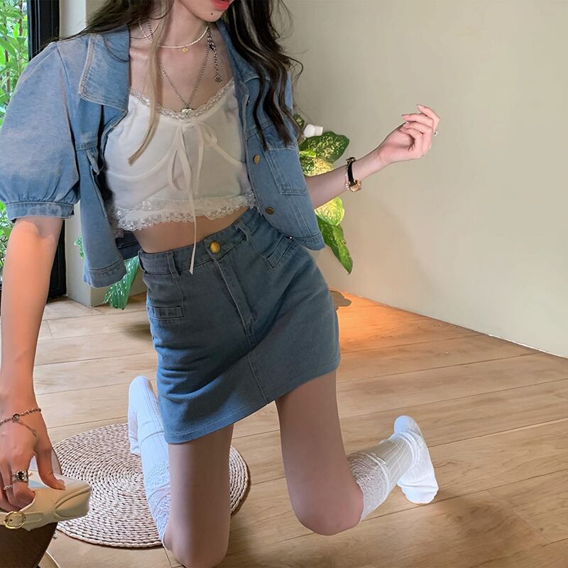 スタンダードショートジャケット ハイウェスト薄手Aラインスカート サマー レトロ 夏物 Xiaofeijia84401934607