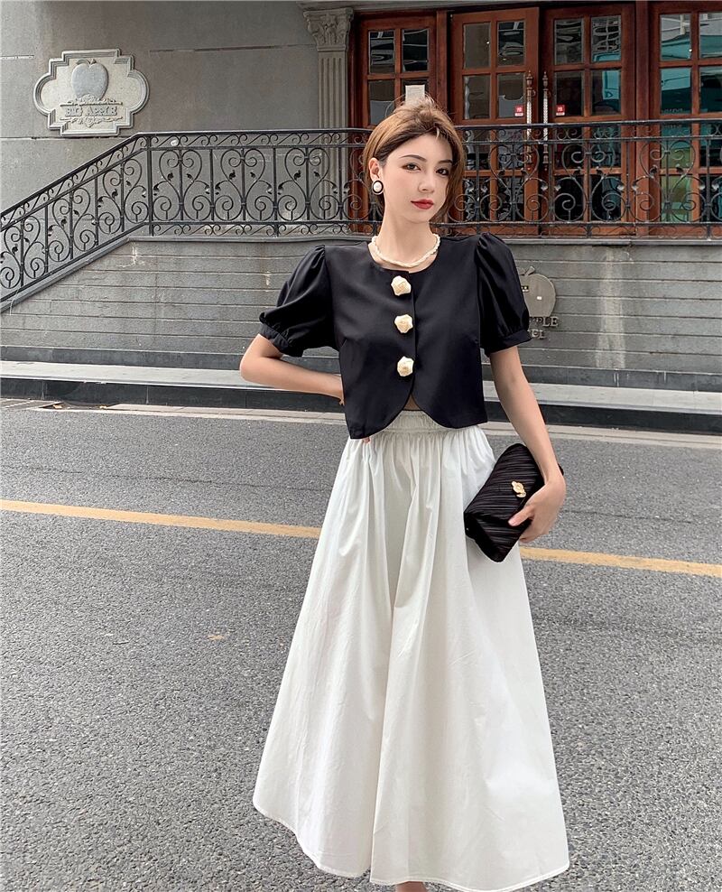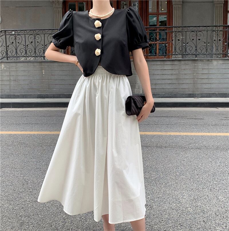 スタイルバックルシャツ ルーズブラウス ホワイトスカート ウェスト Xiaofeijia88234437658