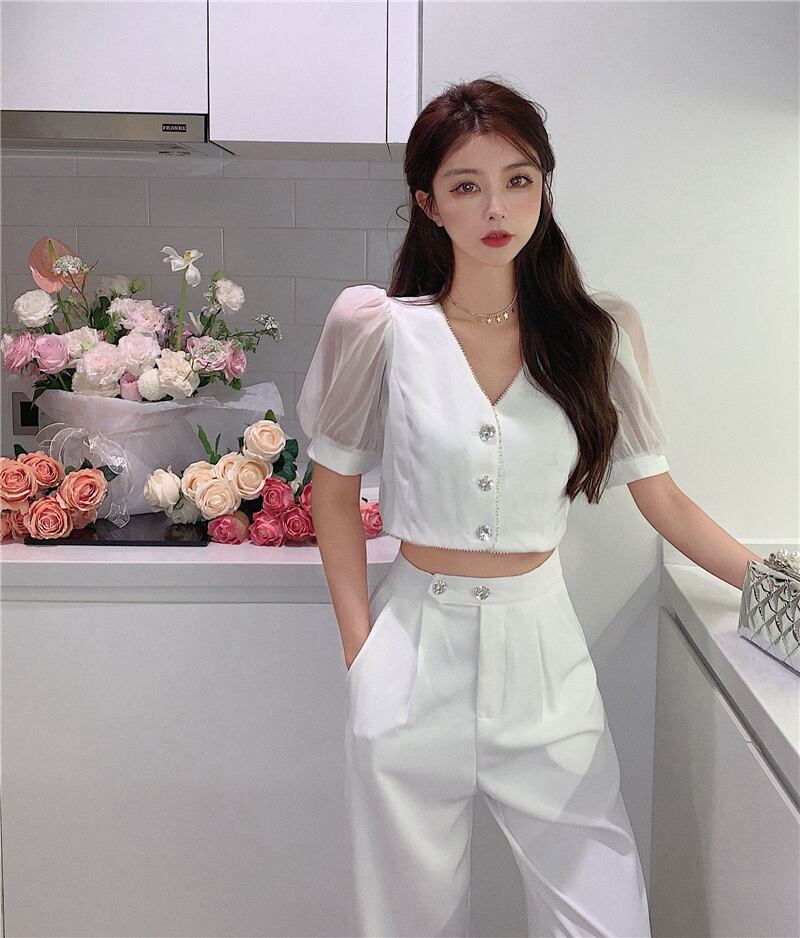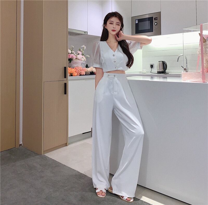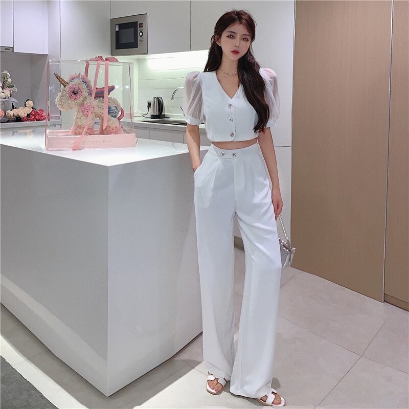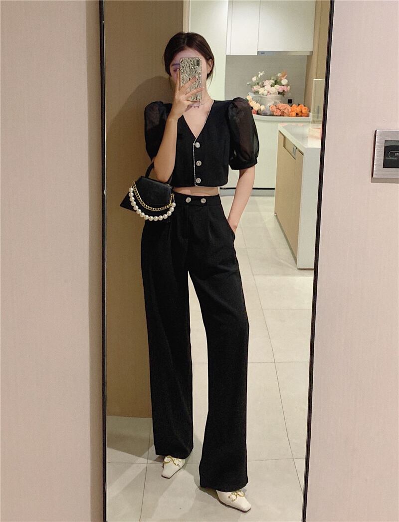 Vネックスリーブカーディガンレディースハイウェストパンツ サマー 夏物 Xiaofeijia39618084671