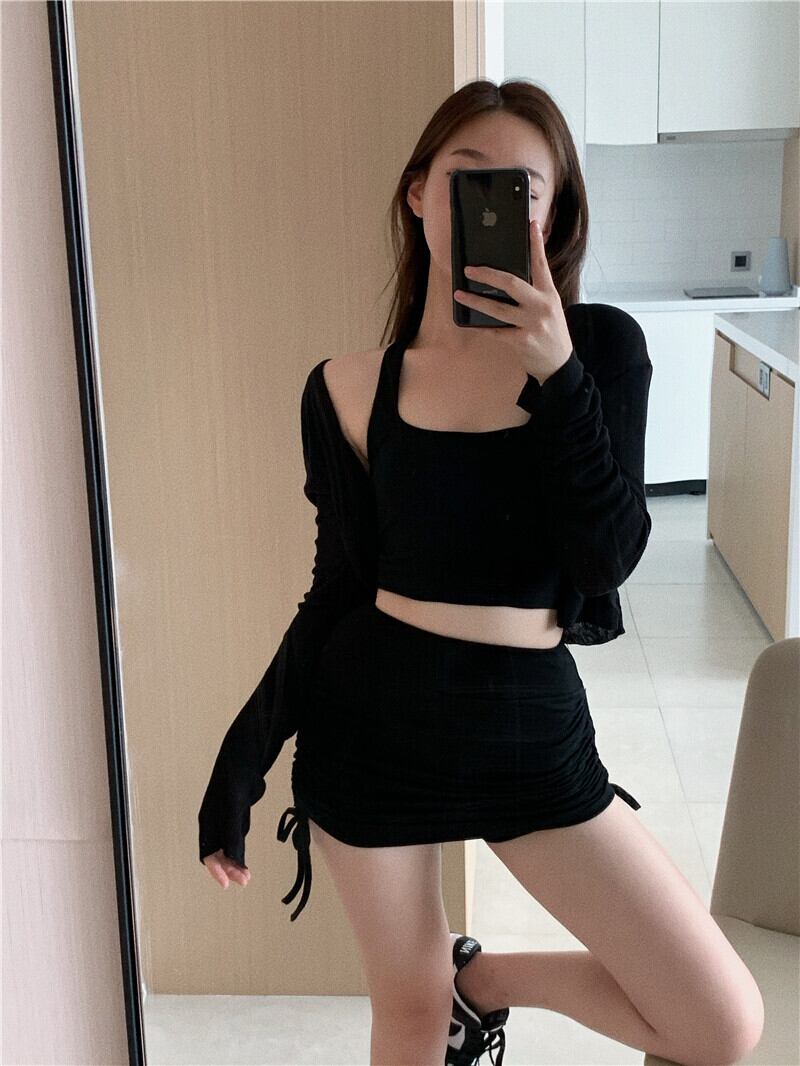 ハイウェストギャザースカート カーディガン Xiaofeijia62551459087