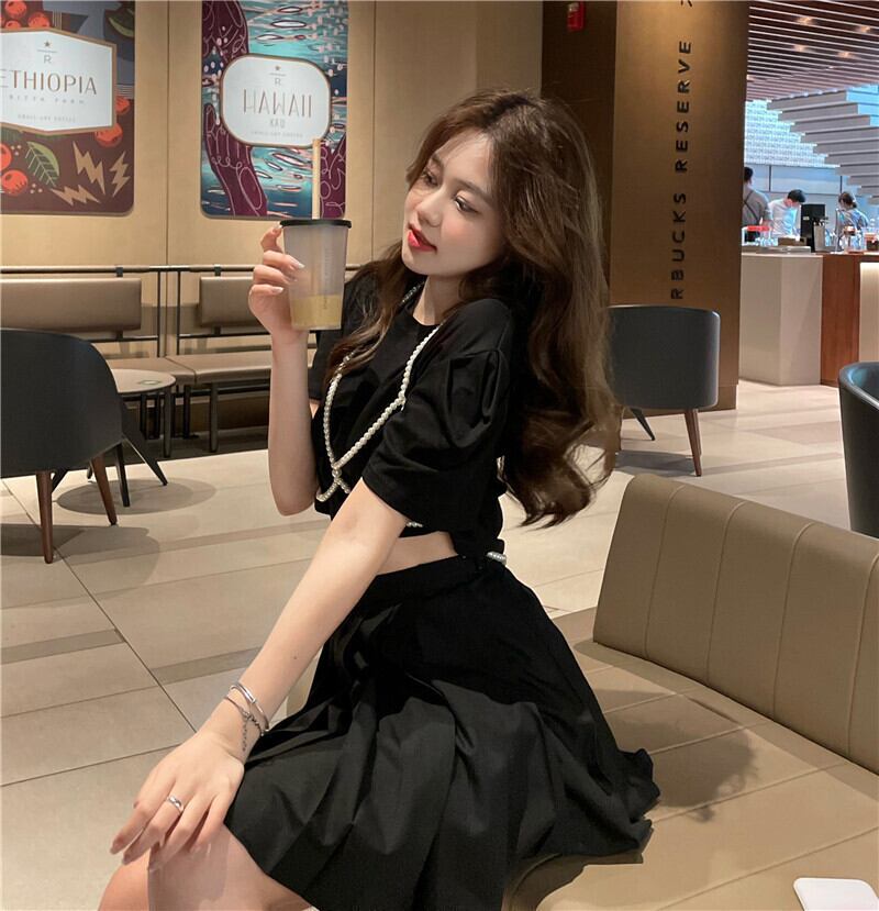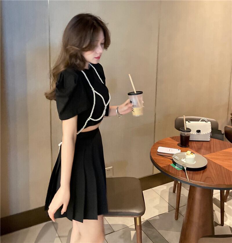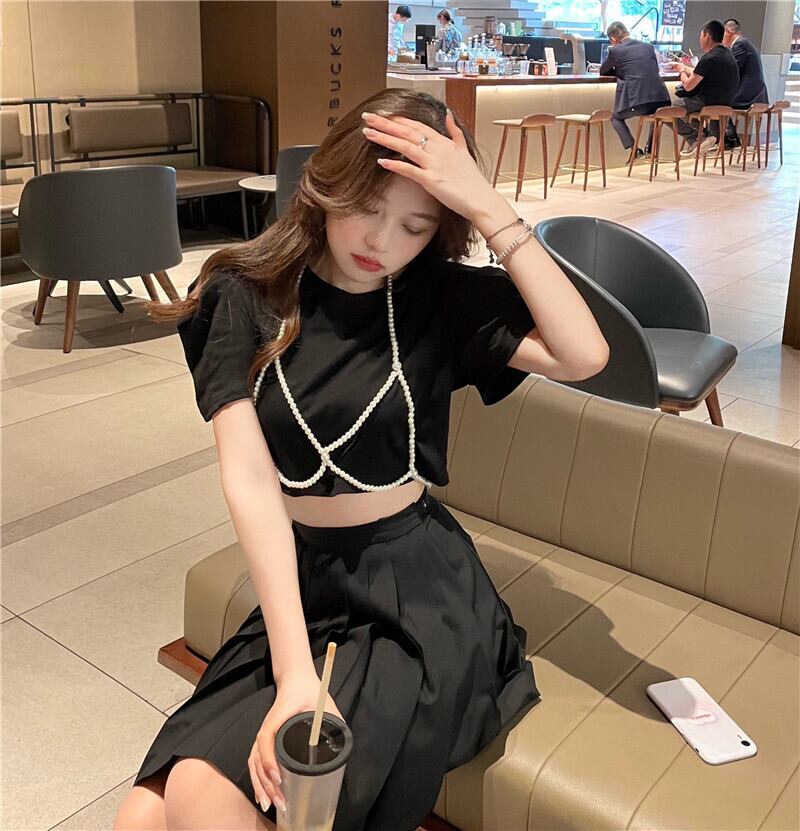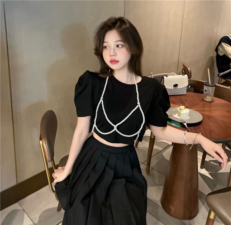 パールチェーン Tシャツ クロップドトップス 真珠 Xiaofeijia61728702696