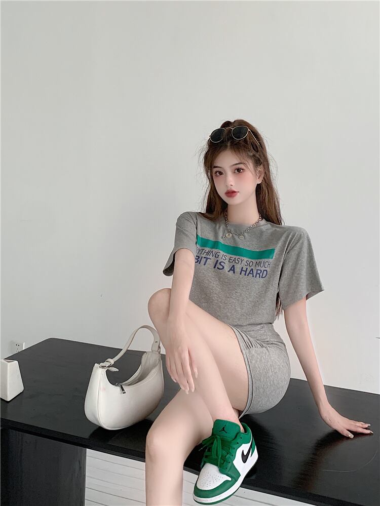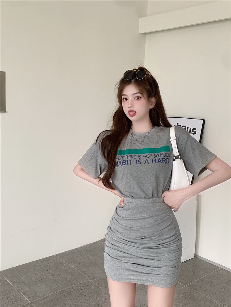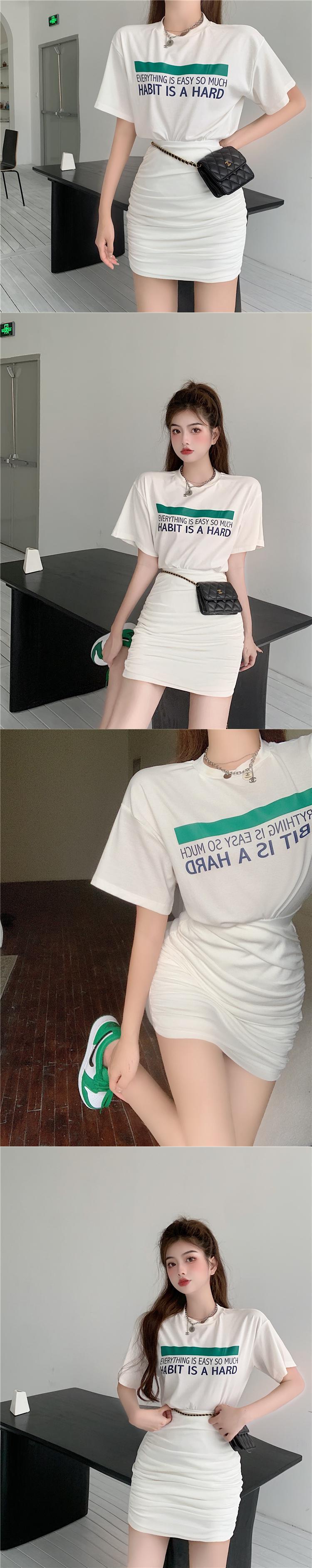 スリムプリントTシャツ プリーツハイウェストウェストスカート Xiaofeijia34787785487