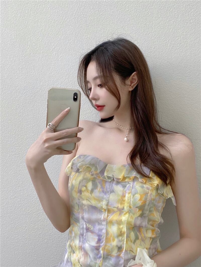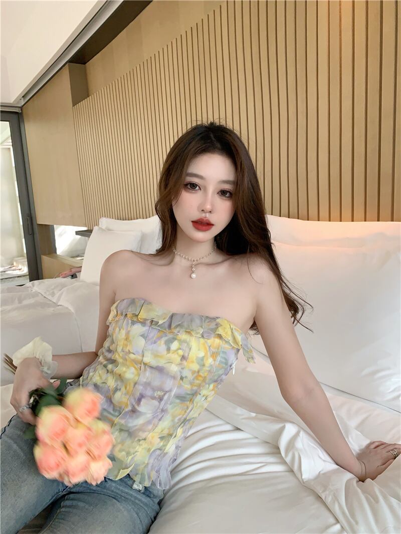 フローラルストラップレスショート 花柄 Xiaofeijia77613636008