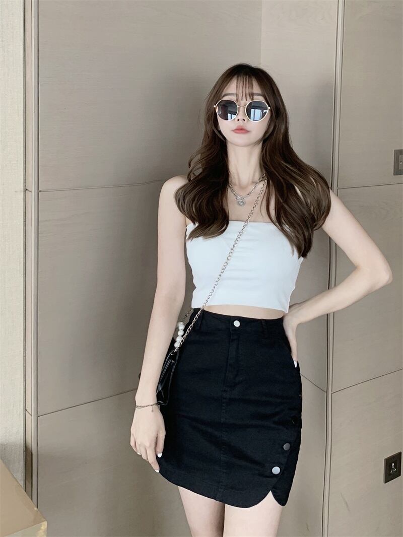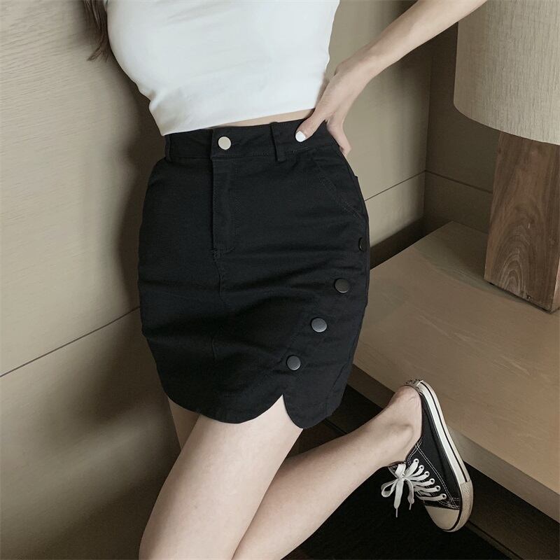 ホワイトスカート サマーハイウェストウェストボタンスリットAライン 夏物 Xiaofeijia34393013163