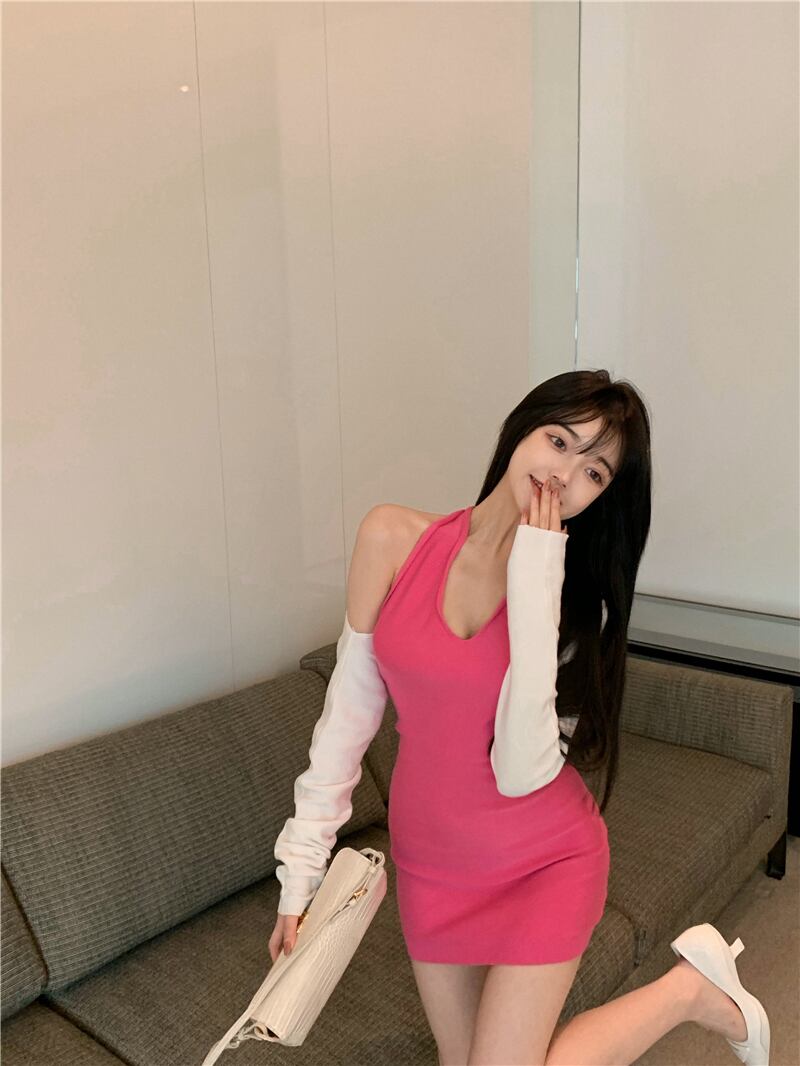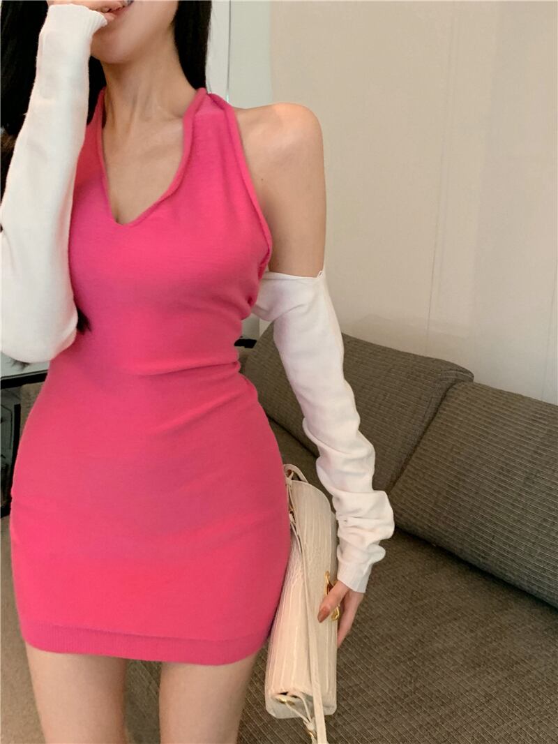 ホワイトレッドホルタースリムドレス サマー 夏物 Xiaofeijia3424614075