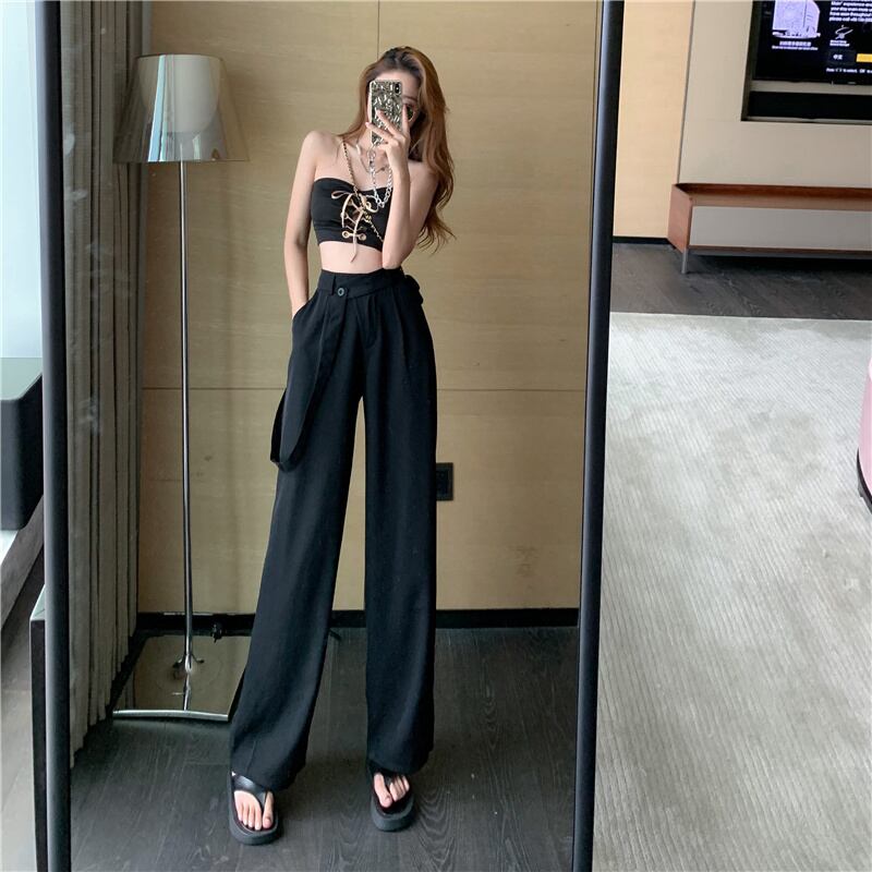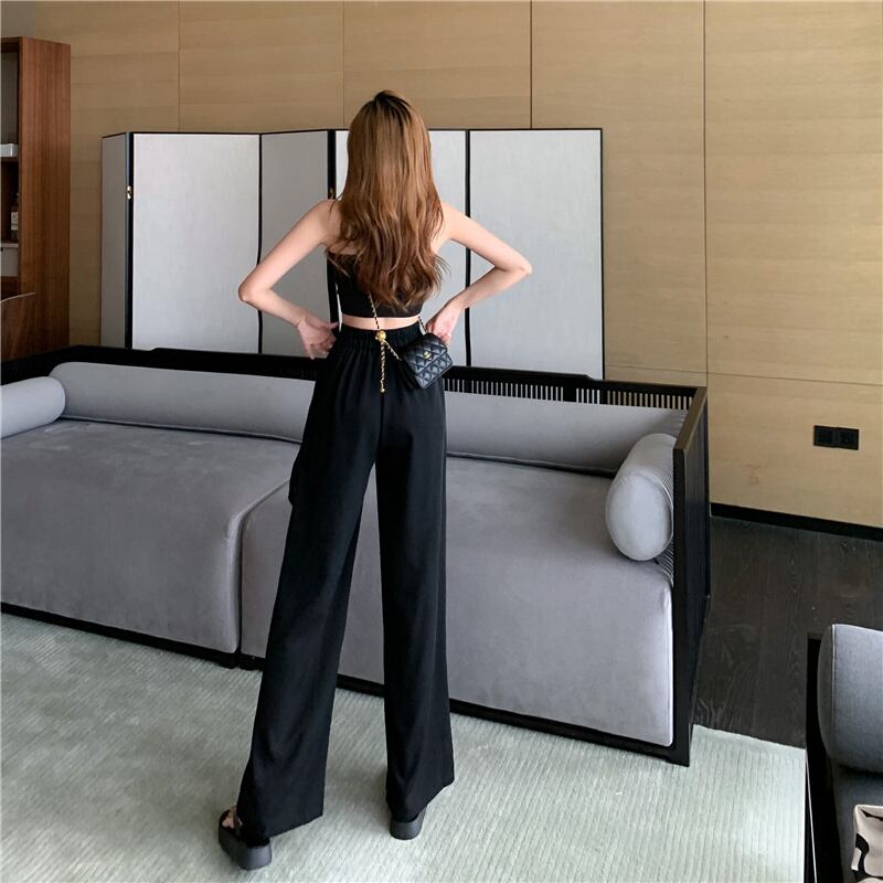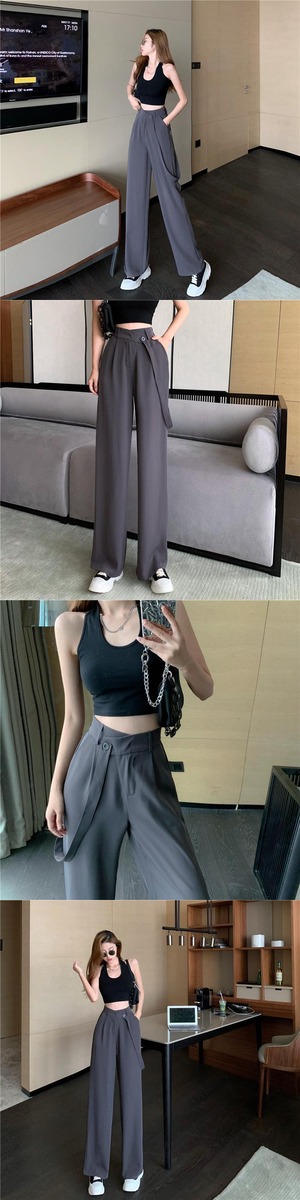 パンツ ハイウェストカジュアルルーズバックストレッチロングサマー エラスティック 伸縮 夏物 Xiaofeijia47502024938