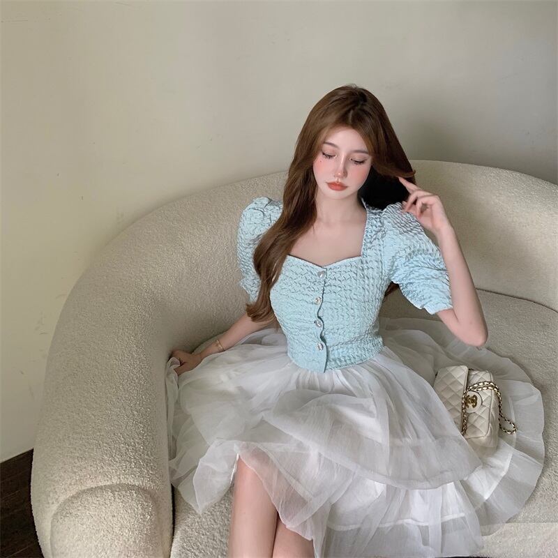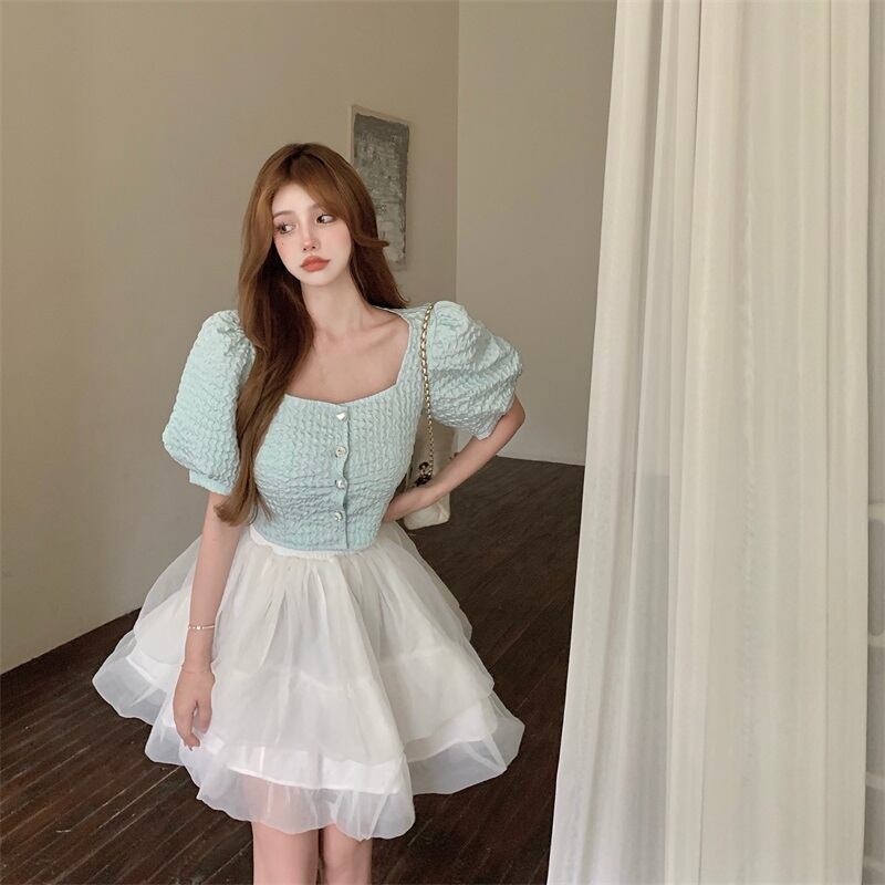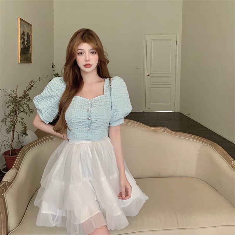 スリーブトップス メッシュFlowerデザイン スカート パニエ ペチコート フラワーデザイン スクウェア Xiaofeijia79899390314