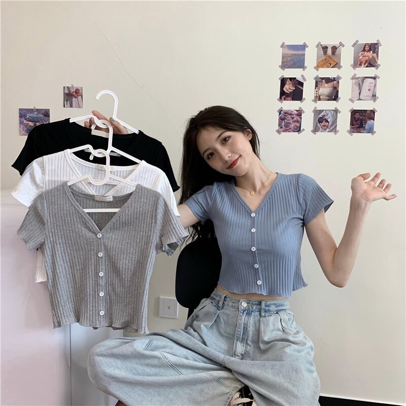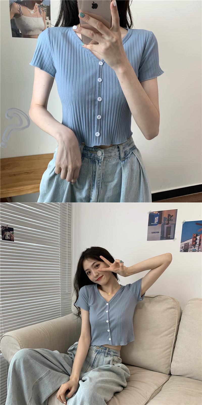 サマーシャツ VネックニットTシャツ カーディガン 夏物 Xiaofeijia79045151656