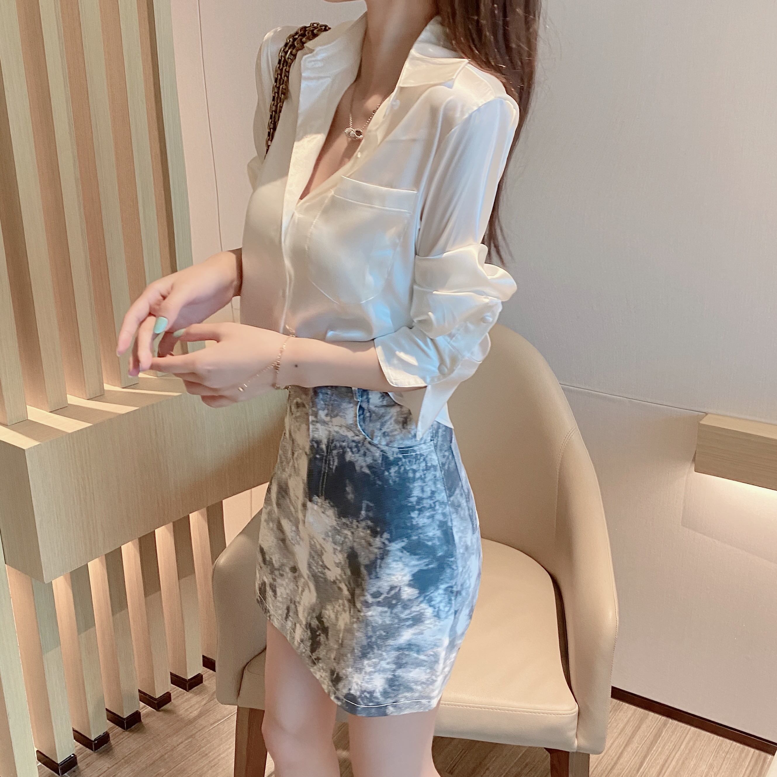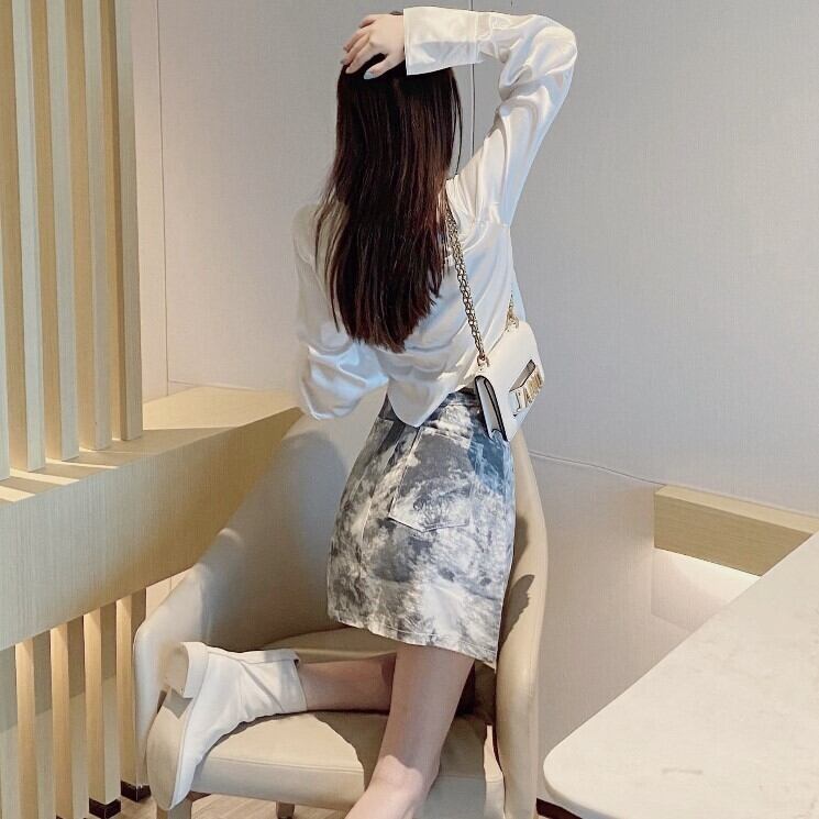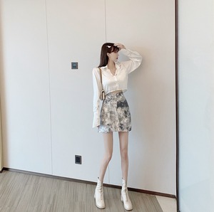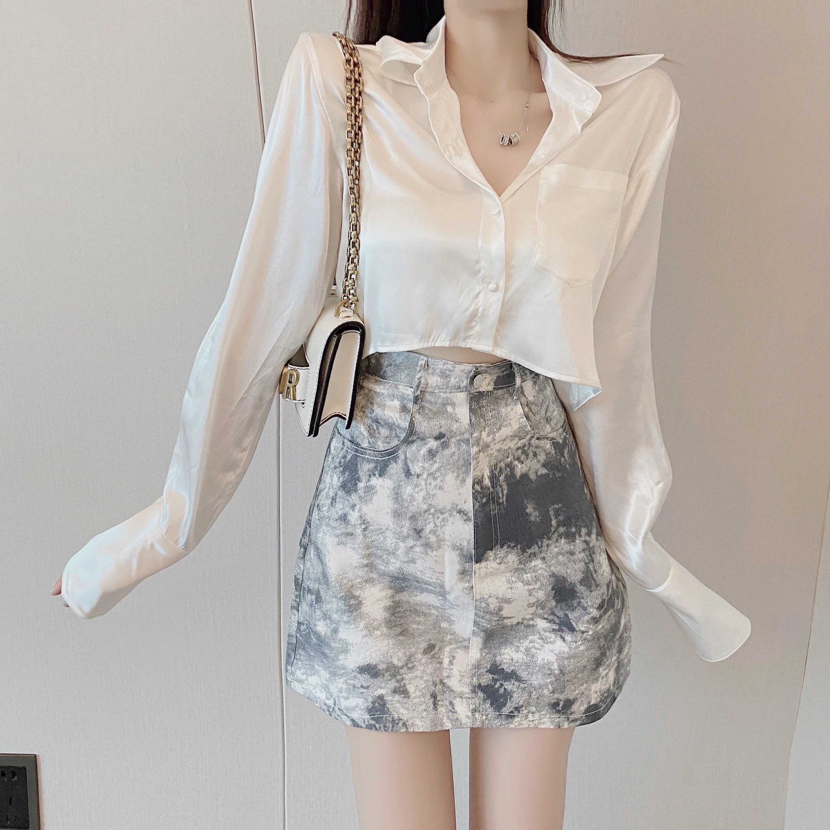 スプリングサマーショートシャツ ハイウェストスカート ロング 春物 夏物 Xiaofeijia89291426200