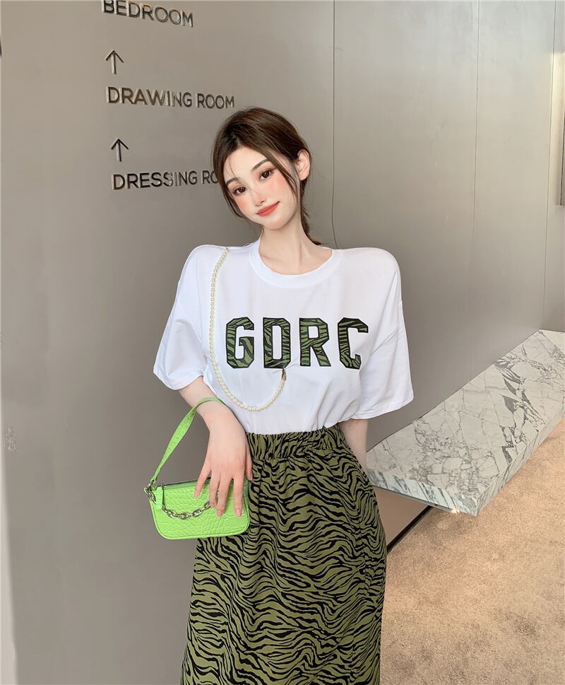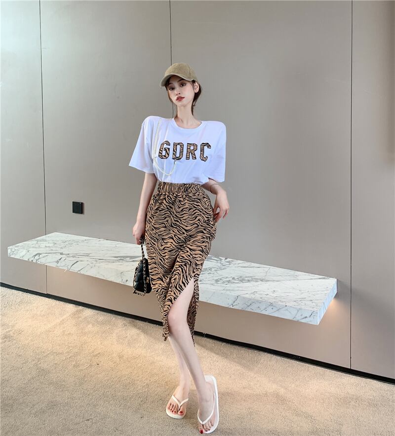 薄手プリントチェーン Tシャツ ハイウェストウェストレオパードスカート Xiaofeijia33741207335