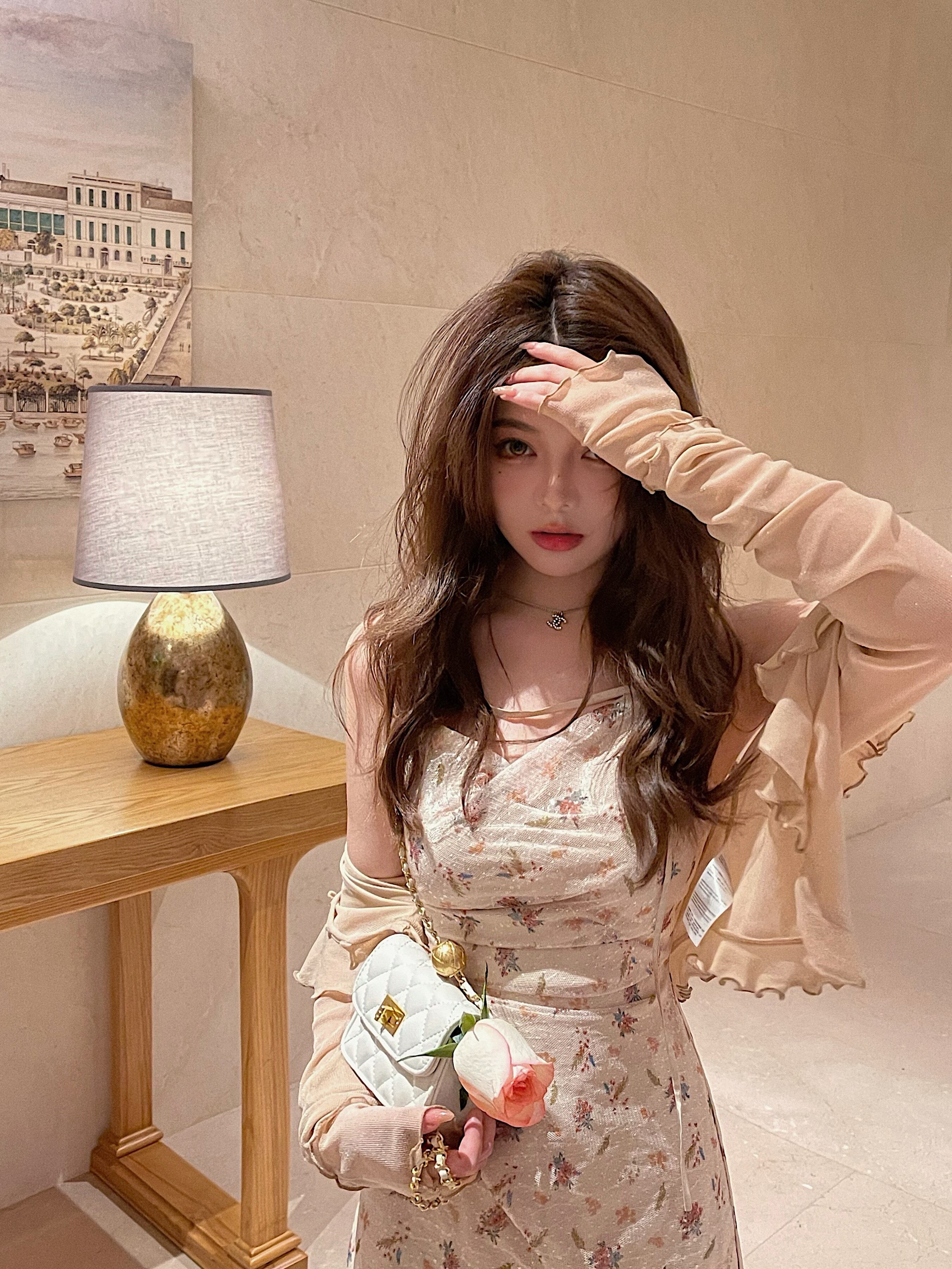 薄手ニットカーディガンレディースサマーフローラルスカート ウェストVネックドレス 夏物 花柄 Xiaofeijia1656752120