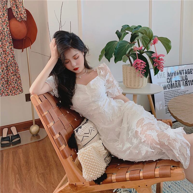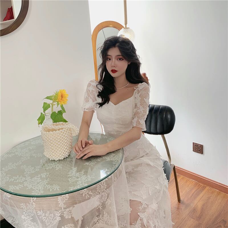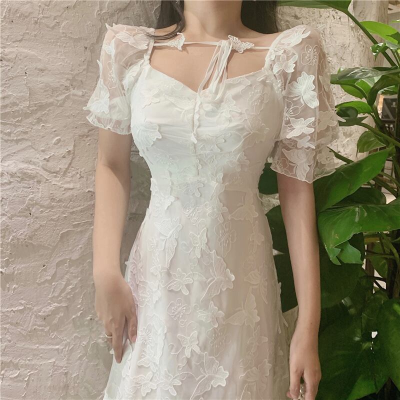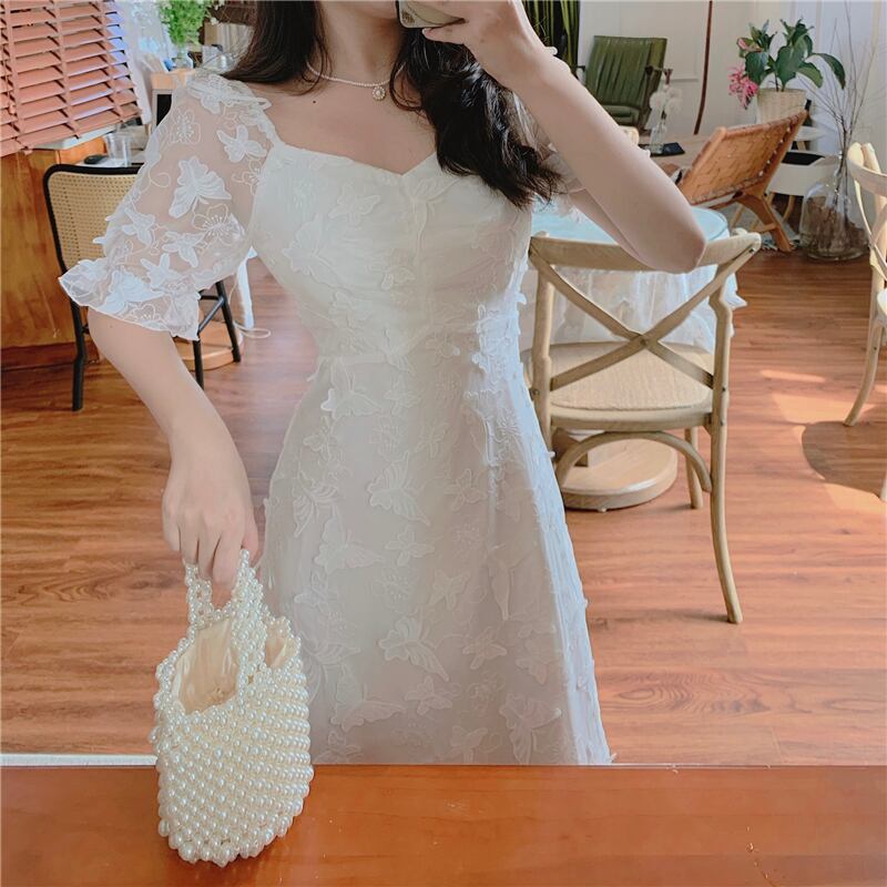 サマーホワイトButterflyデザイン レースドレス スカート Aライン 夏物 Xiaofeijia70065808876