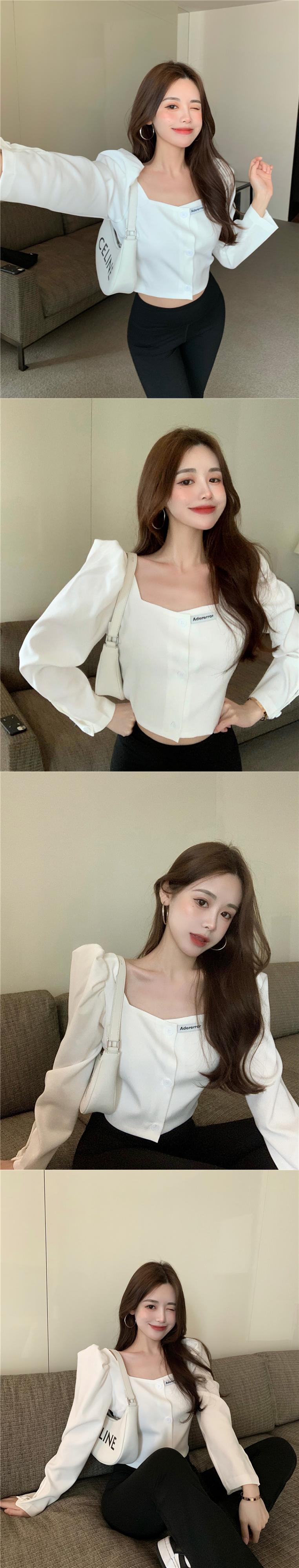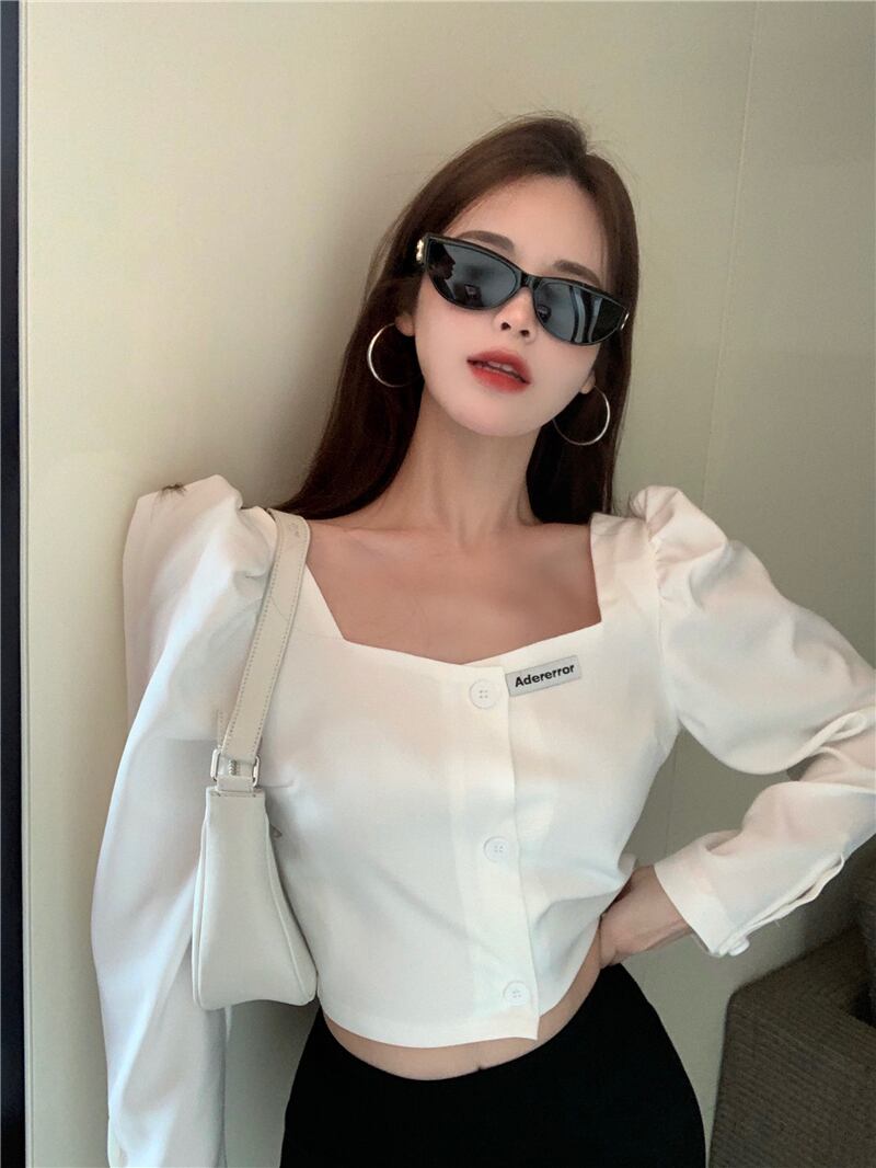 ショートシャツ スプリングサマースタイルトップス ロング 春物 夏物 スクウェア Xiaofeijia36942622899