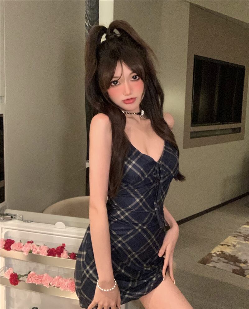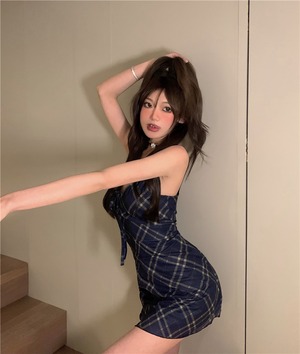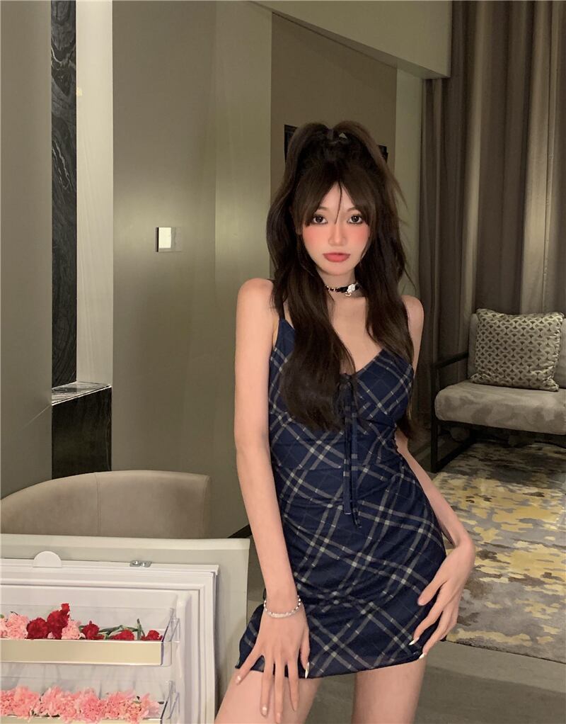Vネックスカート バックウェストドレス レディース レース レースアップ Xiaofeijia84602797010