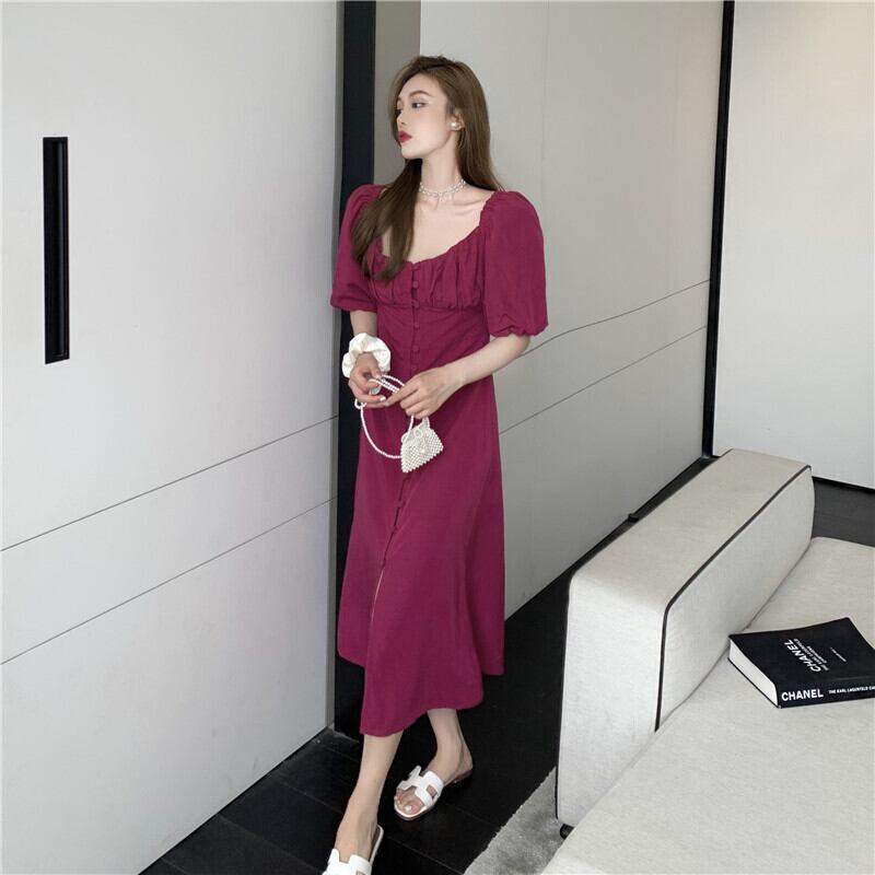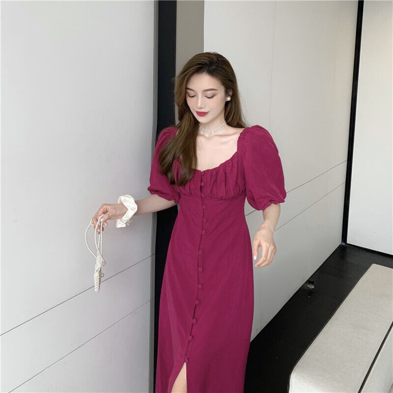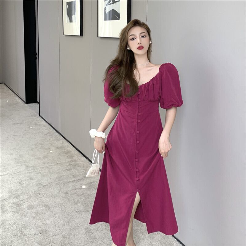 スタイルスタンダードスリーブカラースリットドレス レトロ レース スクウェア Xiaofeijia53816603764