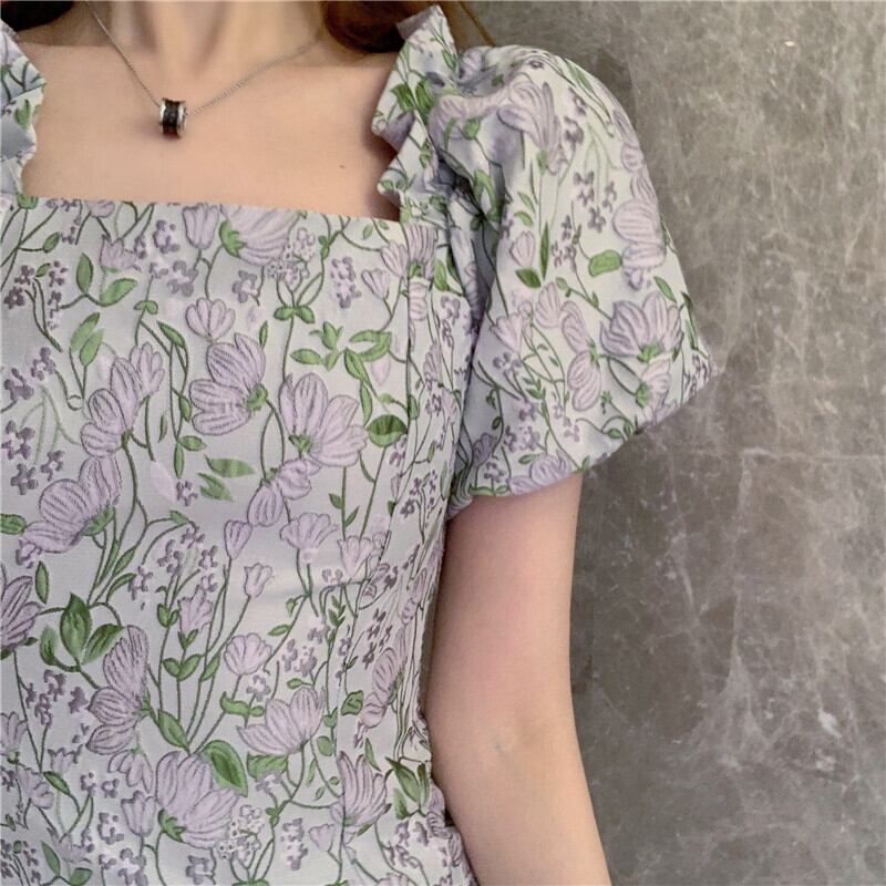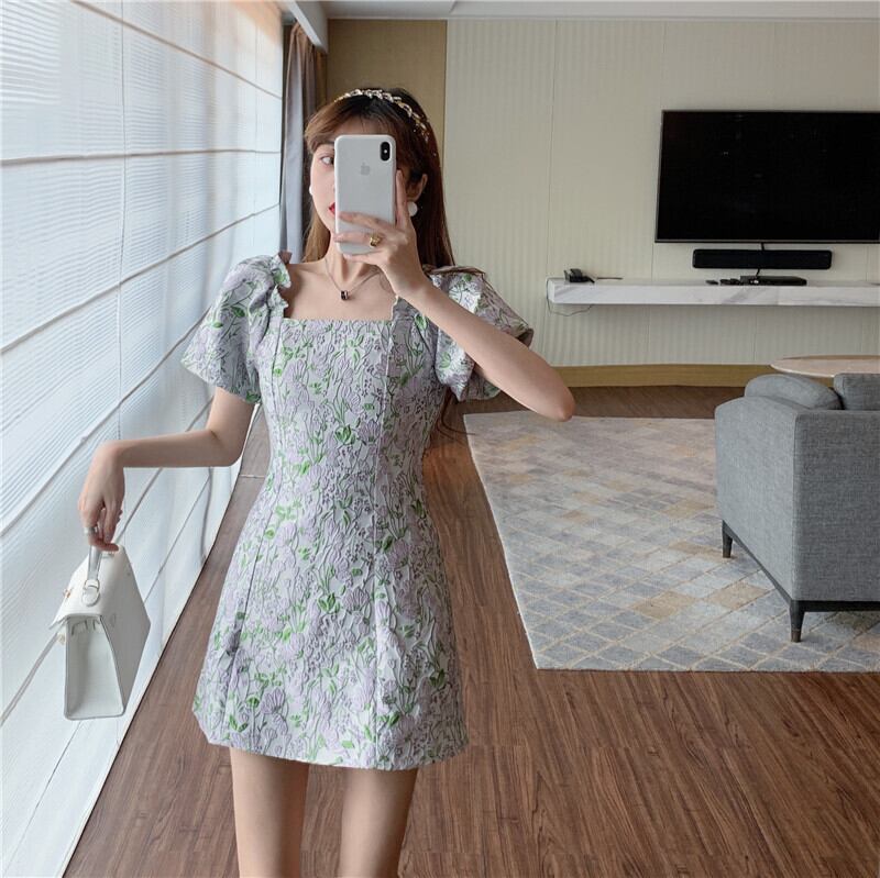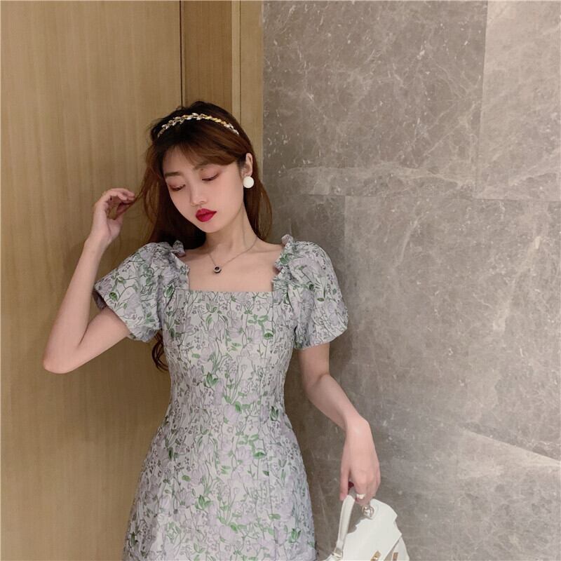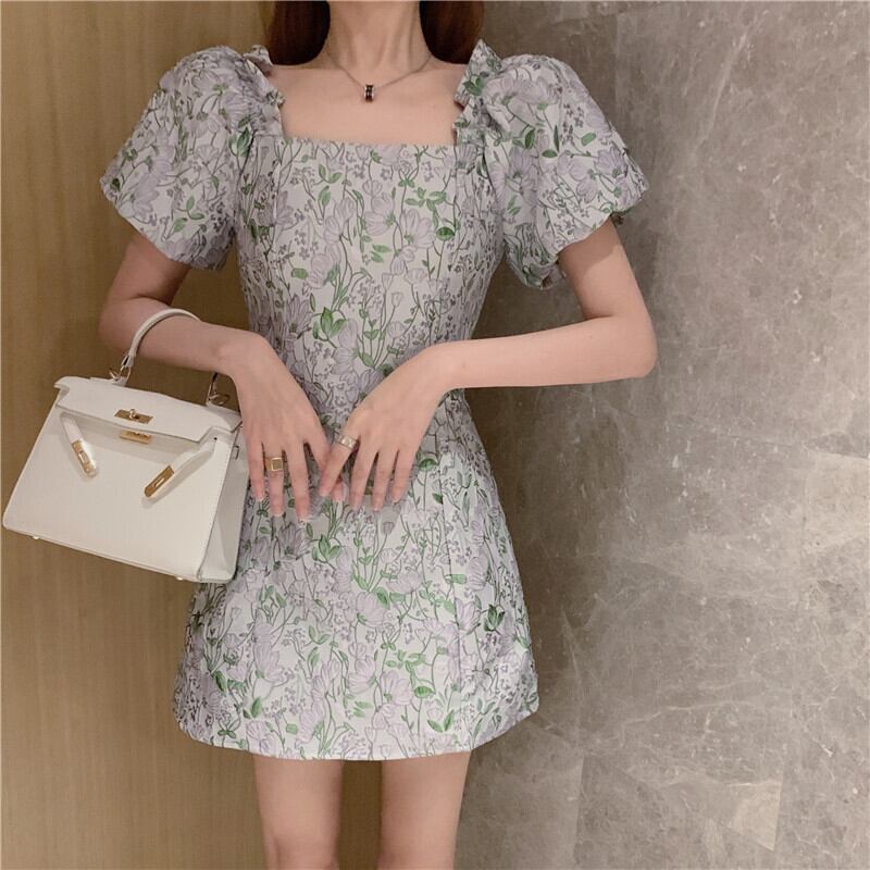 サマースタイルフローラルスリーブドレス ウェストスリム 夏物 花柄 Xiaofeijia94601122257