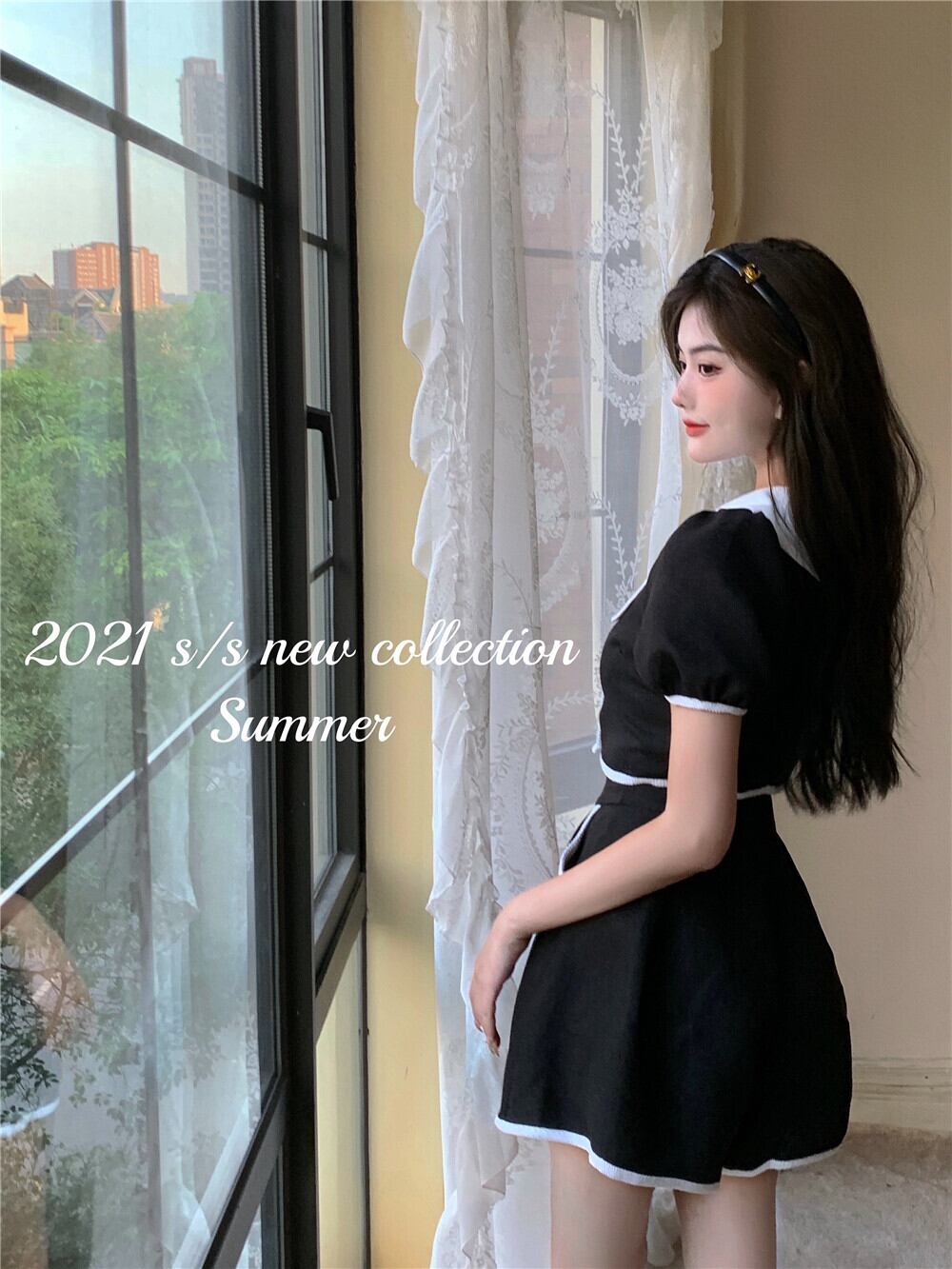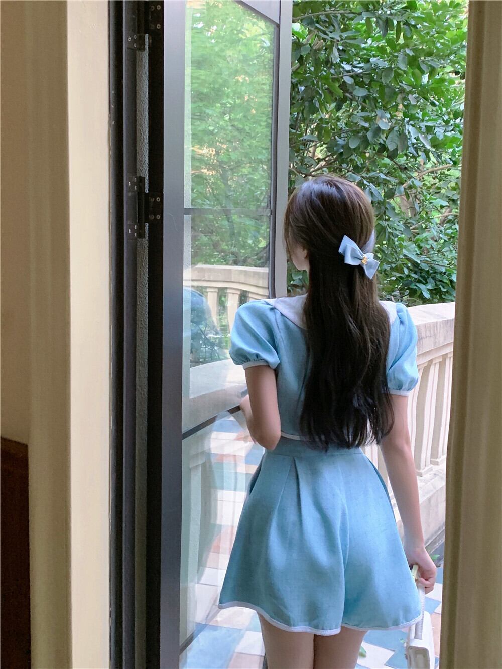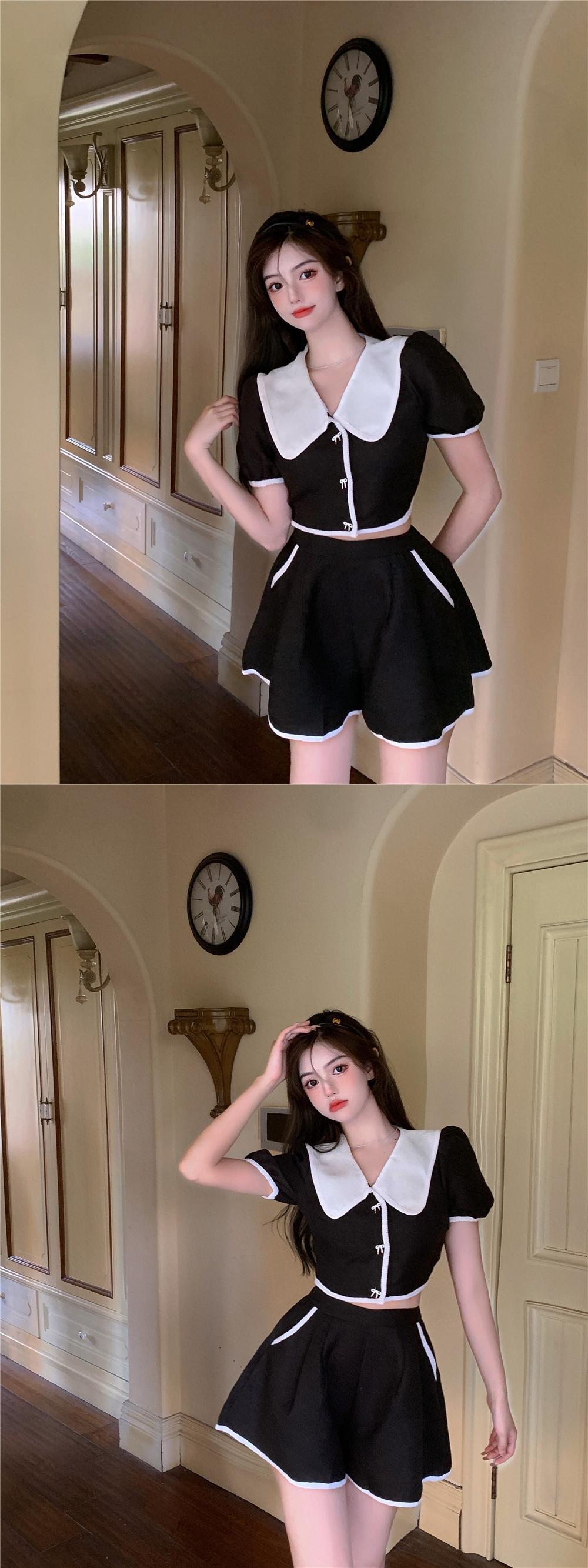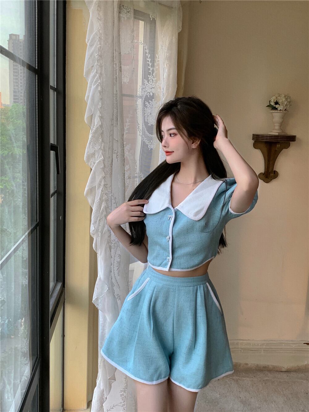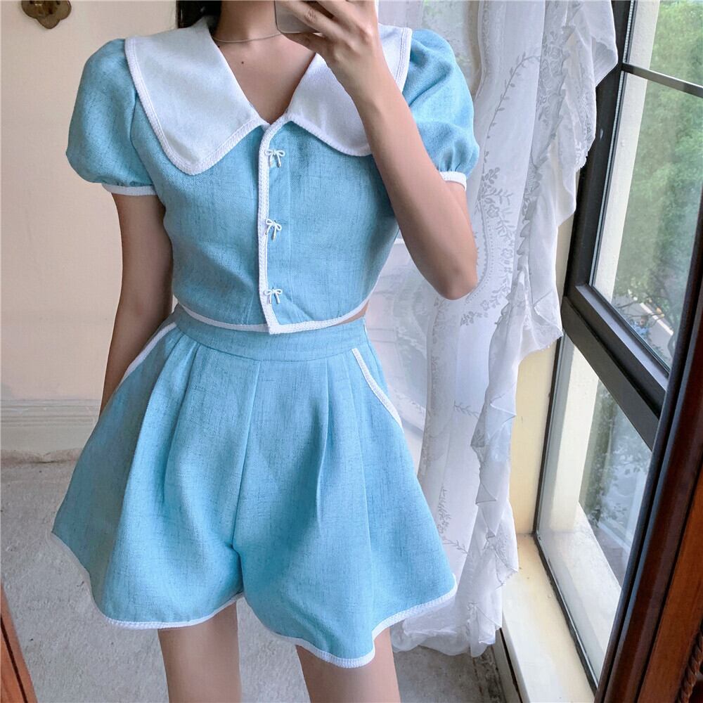 カラーボタンショートスタイルウェストワイドレッグショーツ セット リボン ブルマー ワイドパンツ Xiaofeijia94782421874