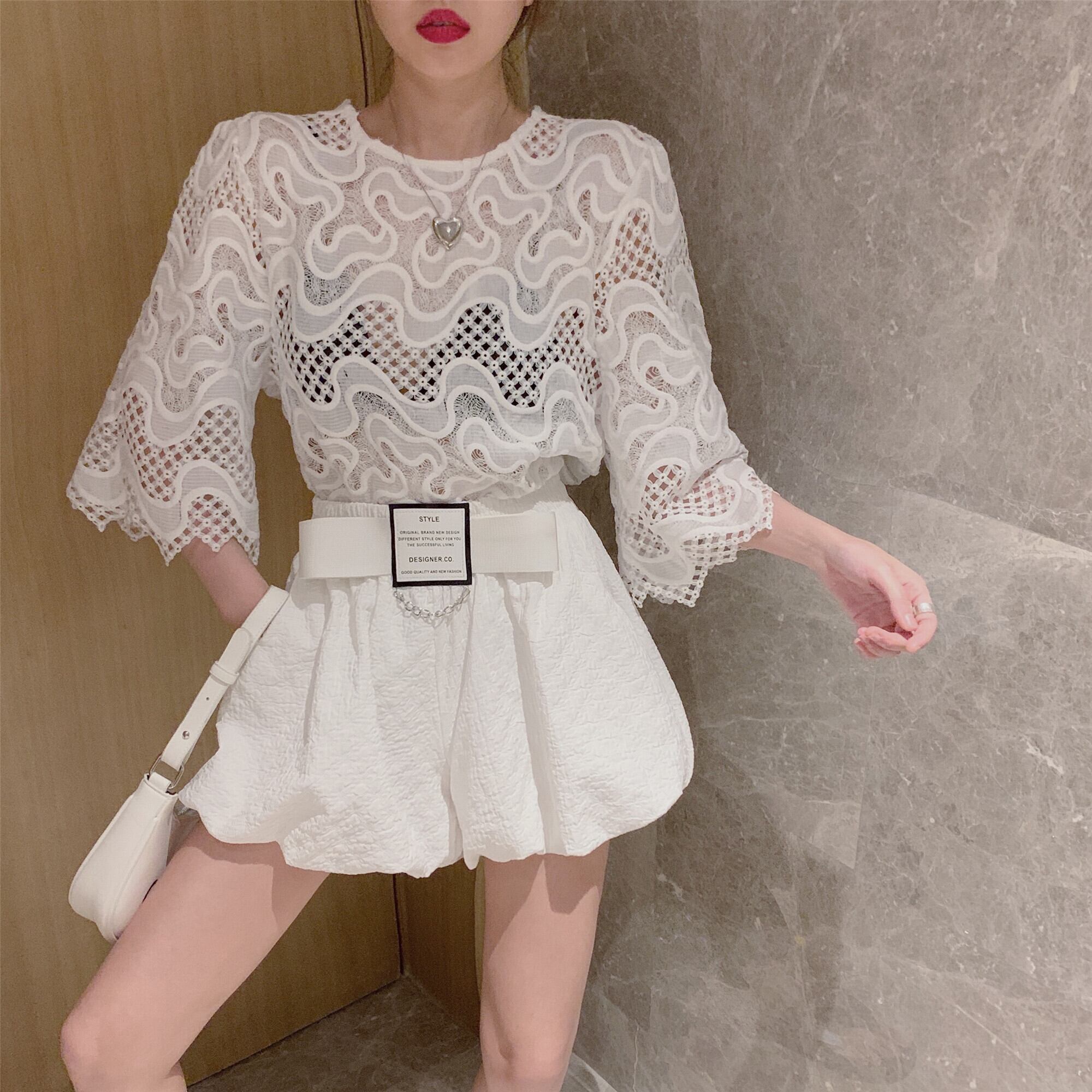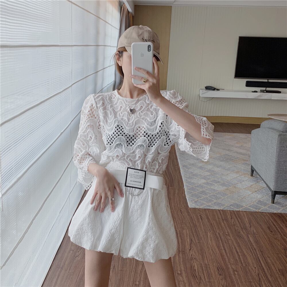 パターンレースシャツ サマールーズ薄手カジュアルトップス 夏物 Xiaofeijia68733293449