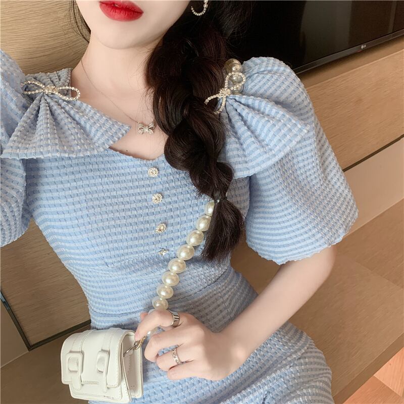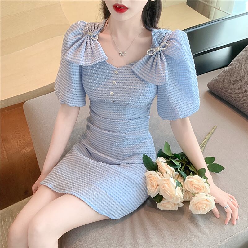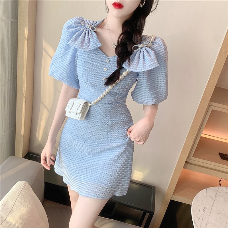 スリーブドレス 半袖 ショート リボン ハーフスリーブ ストリート Xiaofeijia8730678735