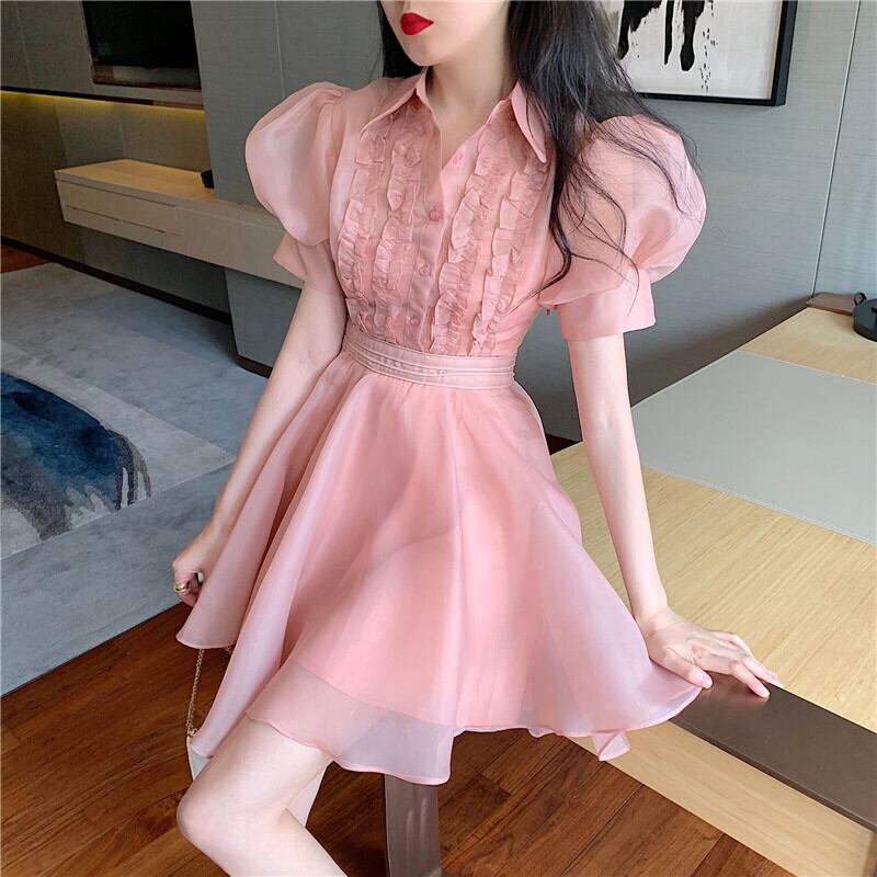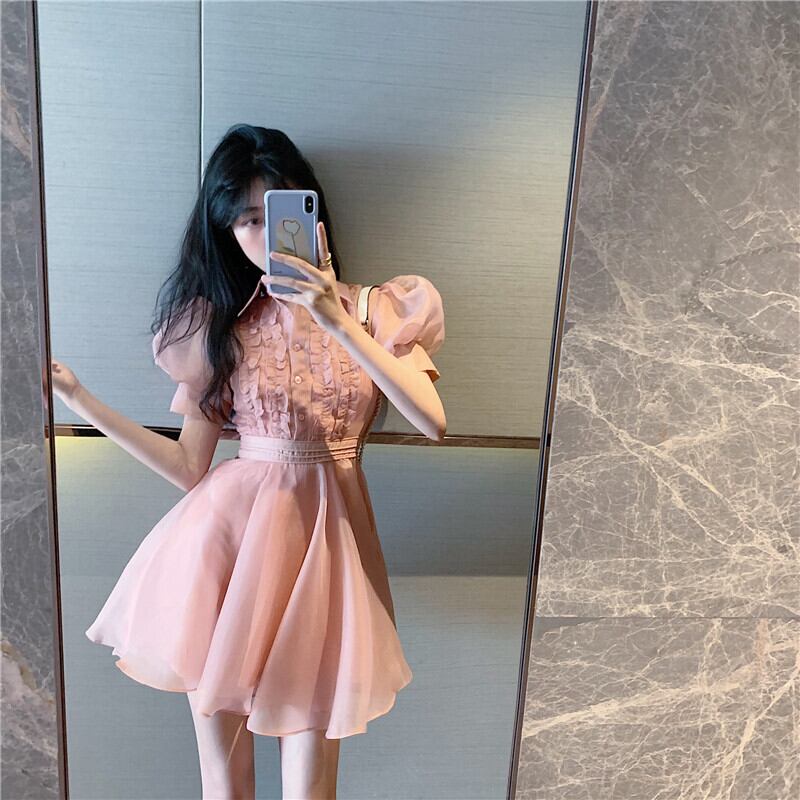 ハイウェストウェストドレス サマースリーブショートスカート エレガント 夏物 Xiaofeijia73010958820